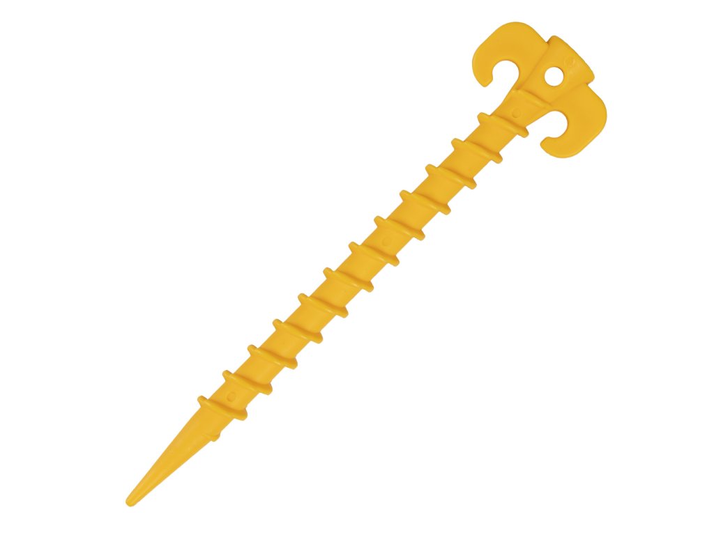 Starker Wind und Plötzliche Unwetter – das ist das Wetter, das uns in den letzten Jahren zu Hause und im Urlaub begleitet. Bei Wind und Sturm kommt kein Zelt ohne eine gute Verankerung aus. Was aber, wenn der Boden zu sandig und weich ist und der klassische Pfahl nicht gut genug hält? Neu entwickelte Pins lösen dieses Problem. Sie sind länger, breiter und haben einen Faden, dank dem sie sich in den Boden eingraben. Schraubheringe sorgen dafür, dass das Zelt auch unter viel schlechteren Bedingungen stehen bleibt, als wenn es mit normalen Heringen verankert wird.