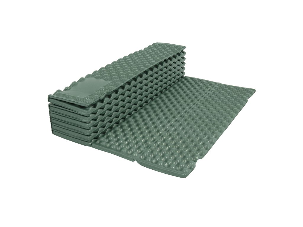Gefaltete Matte mit profilierter Oberfläche im grünen Design. Dank des Profils hat die Matte bei gleicher Materialstärke einen höheren Wärmewiderstand und sorgt für mehr Komfort. Im Gegenteil: Im gepackten Zustand nimmt es weniger Platz ein. Großer thermischer Komfort. Das Material hat eine geschlossenzellige Struktur und eine glatte Oberfläche, sodass es kein Wasser aufnimmt. Wird inklusive Verpackung verkauft.