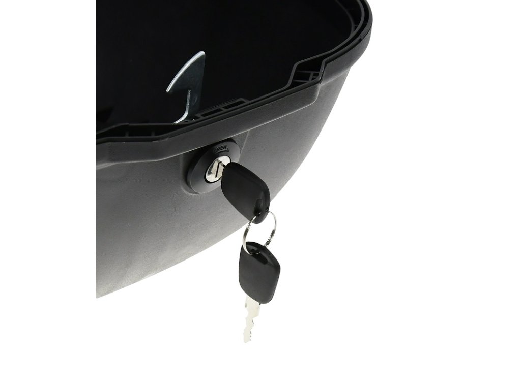 Universeller wasserdichter Reisekoffer für das Elektromotorrad RACCEWAY E-BABETA – aus hochwertigem PVS-Material – sehr langlebig und robust – rote Plexiglas-Reflektoren – abschließbar (2x Schlüssel) – wasserdicht – Volumen: 16 Liter – B 38 * Länge mit Scharnier 39,5 * Tiefe geschlossen 22 * Tiefe Unterteil 14 cm Abmessungen: 30 x 40 x 24 cmZusätzliche Parameter