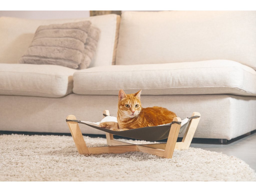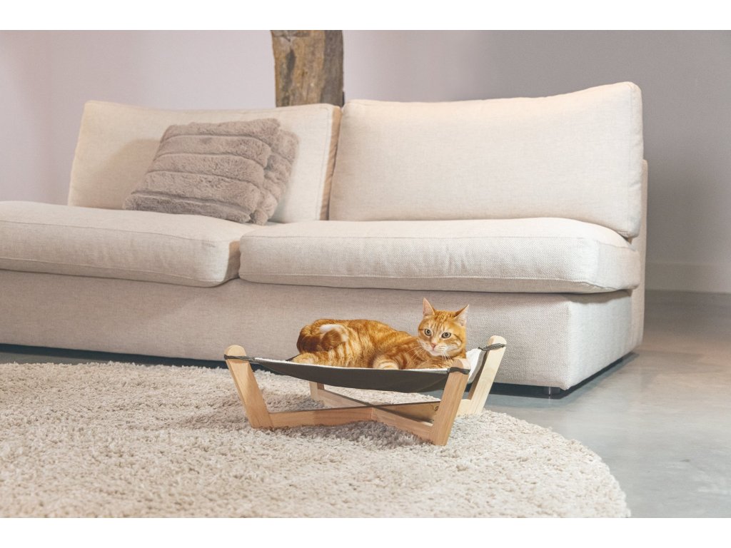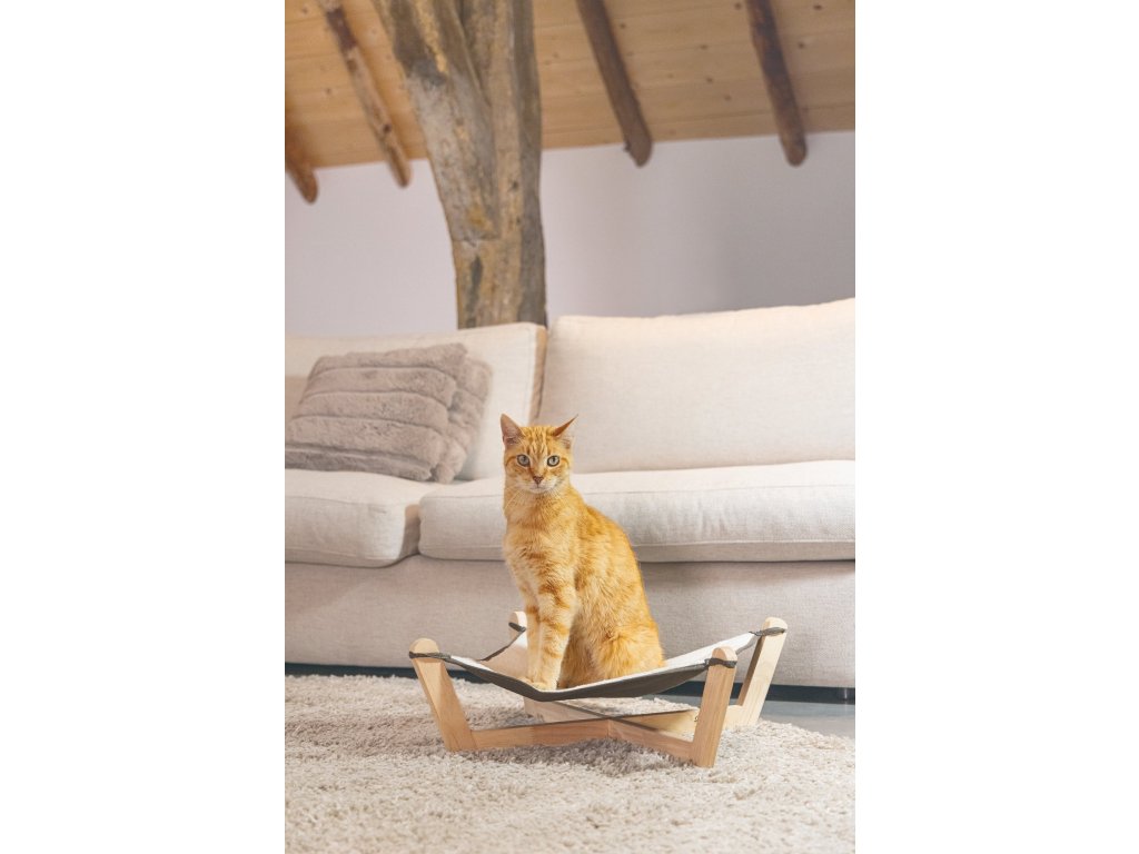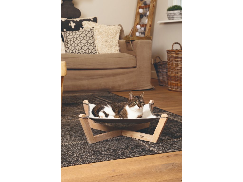 Po dlouhém dni hraní a škrábání si Vaše kočka určitě potřebuje trochu odpočinout. Tato roztomilá houpací síť Designed by Lotte Gaia na dřevěné konstrukci nabízí Vašemu mazlíčkovi příležitost se zcela uvolnit. Umístěte houpací síť na příjemné místo, které má kočka ráda a uvidíte, jak si bude odpočinek užívat. Textilní část houpací sítě je z jedné strany vyrobena z měkké polyesterové tkaniny a z druhé strany z lněného plátna. Tato kombinace látek zajišťuje, že je houpací síť příjemná, měkká a teplá. Textilní část je odnímatelná a lze prát v pračce na 30 stupňů.