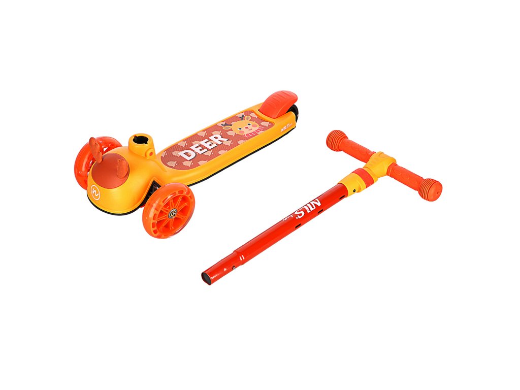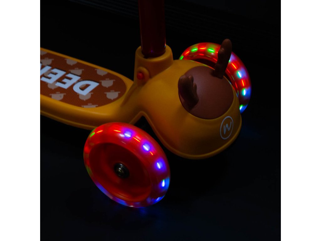 Tři kolečka jsou garancí vysoké stability. Teleskopická řídítka jsou pevná a slouží primárně pro udržení rovnováhy. Manévrování se provádí pomocí přenášení váhy na jednu, nebo druhou stranu. Díky řízení pomocí přenášení váhy je koloběžka maximálně bezpečná a nehrozí její převrhnutí. Řídítka jsou výškově nastavitelná. Gripy na řídítkách jsou vyrobeny z gumy pro jistý úchop. Konce gripů jsou opatřeny "bambulí", která zamezuje sesmyknutí dlaně z gripu a zároveň dlaň chrání, když dítě například zavadí řídítkem o překážku - například o fasádu domu. Svítící kolečka zvyšují viditelnost za šera a pro plynulé otáčení a svižnou jízdu jsou osazeny ložisky ABEC 9. Zadní blatník slouží jako nášlapná brzda pro bezpečné zastavení koloběžky.