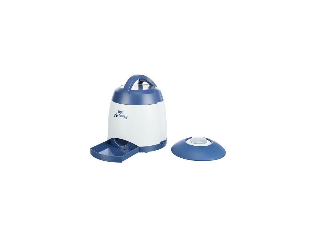 - otočná nádržka uvnitř automatu na pamlsky s nastavitelným otvorem pro nastavení uvolnění pamlsku