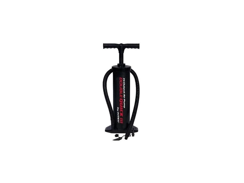 Ruční pumpa Double Quick III s flexibilní hadicí lze použít pro foukání i vyfouknutí díky dvoupístové technologii. Součástí balení jsou také tři nástavce. Rozměr pumpy je 48 cm.Doplňkové parametry
