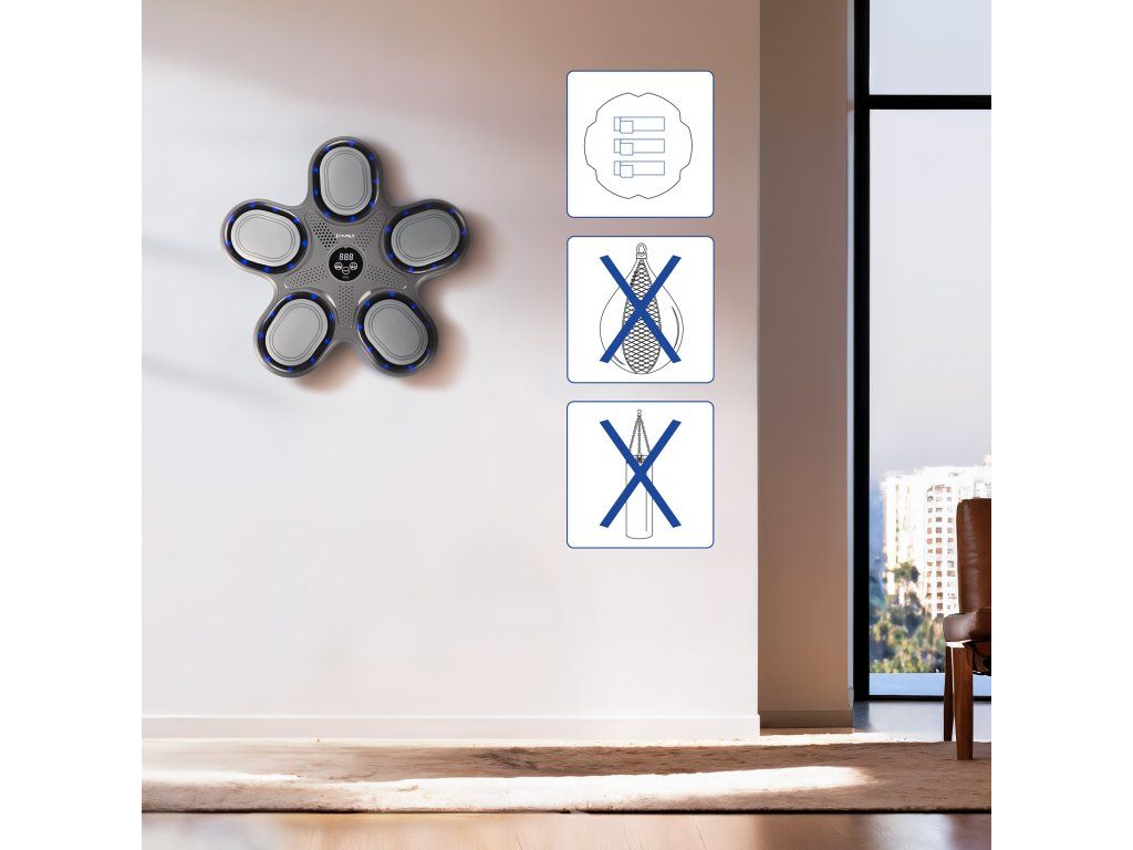 Boxovací terč zobrazuje zjednodušený způsob měření – na obrazovce se ukazuje počet přesných zásahů, což umožňuje uživateli sledovat pokrok a motivovat se ke zlepšení. Absence zbytečných funkcí dělá zařízení snadno ovladatelné a ideální pro každého, kdo chce soustředit na čistý a efektivní trénink.