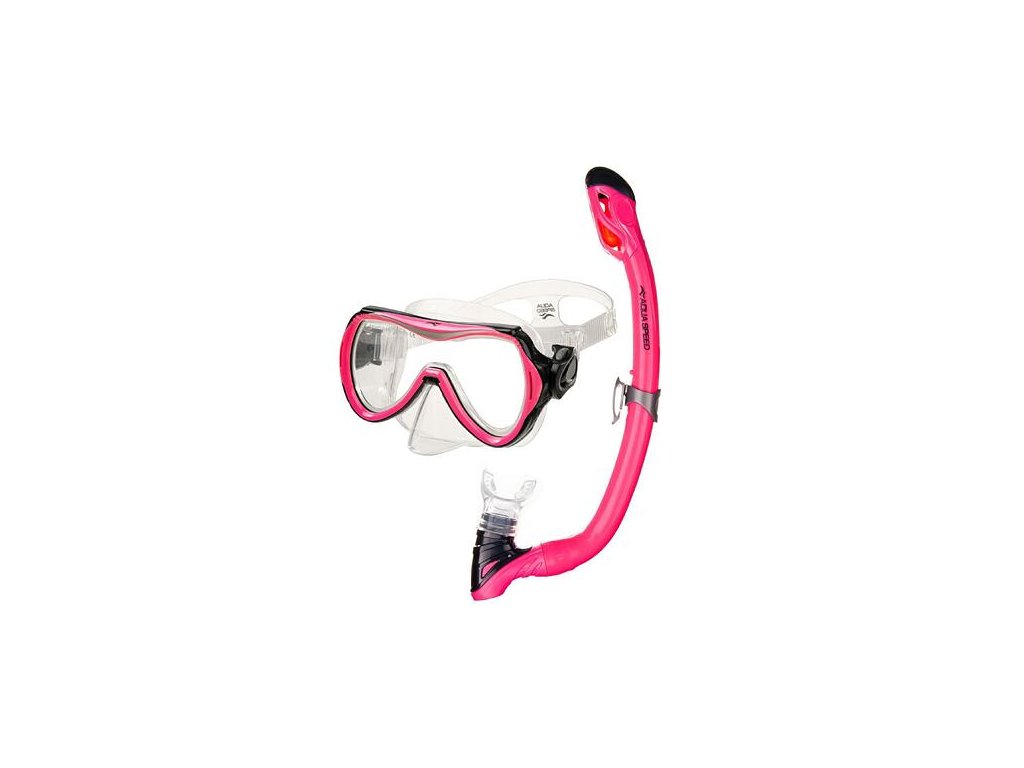 The AquaSpeed Alize + Samos snorkeling and recreational diving set includes a mask and snorkel for children up to approximately 12 years of age. The mask in a modern design is made of durable hardened 4 mm lens, silicone and with a simple EASY-ADJUST system for adjusting the size. The snorkel has a silicone profiled mouthpiece, an ULTRA DRY upper valve reducing the possibility of water entering above the surface, a lower valve for blowing out water and you can easily attach it to the mask thanks to an adjustable buckle. The whole set is packed in a practical mesh bag with a drawstring for easier portability.Additional parameters