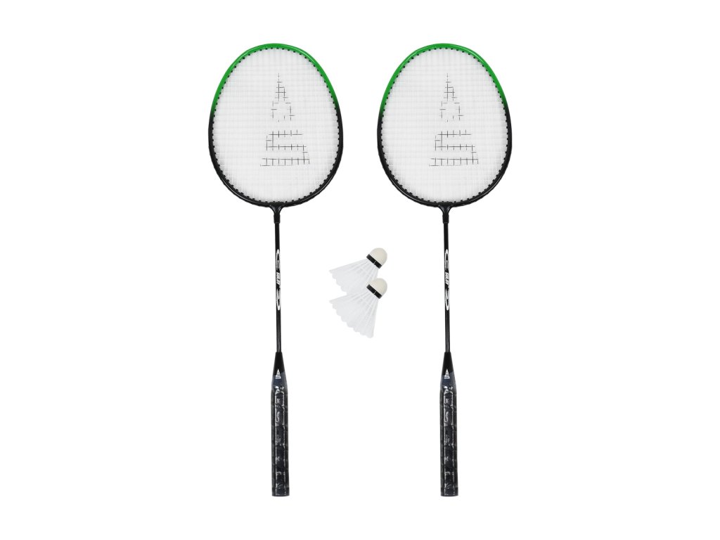 Badminton set for recreational play. The set includes: - 2x racket (head size 24 cm) - 2x basket - practical travel bag - racket material: aluminium/steel - total length of the racket: 66 cm - weight of the racket: 86 gAdditional parameters
