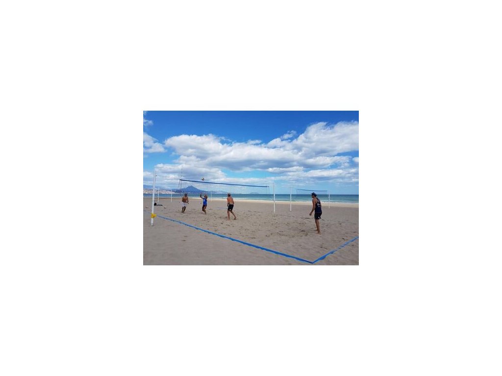 With the set of Beach Boundary lines from the well-known Spanish brand León de Oro, you can create a beach volleyball court in no time. The lines are made of durable PVC material. The set consists of 2 lines with a length of 8 m and 2 lines with a length of 16 m. The lines have metal eyes to connect the corners with pins (pins are not included in the package). We also recommend purchasing a high-quality Competition 3 mm beach volleyball net of the same brand for the lines. - material: durable PVC - width: 5 cm - set: 2 x 8 m + 2 x 16 m - without pegsAdditional parameters