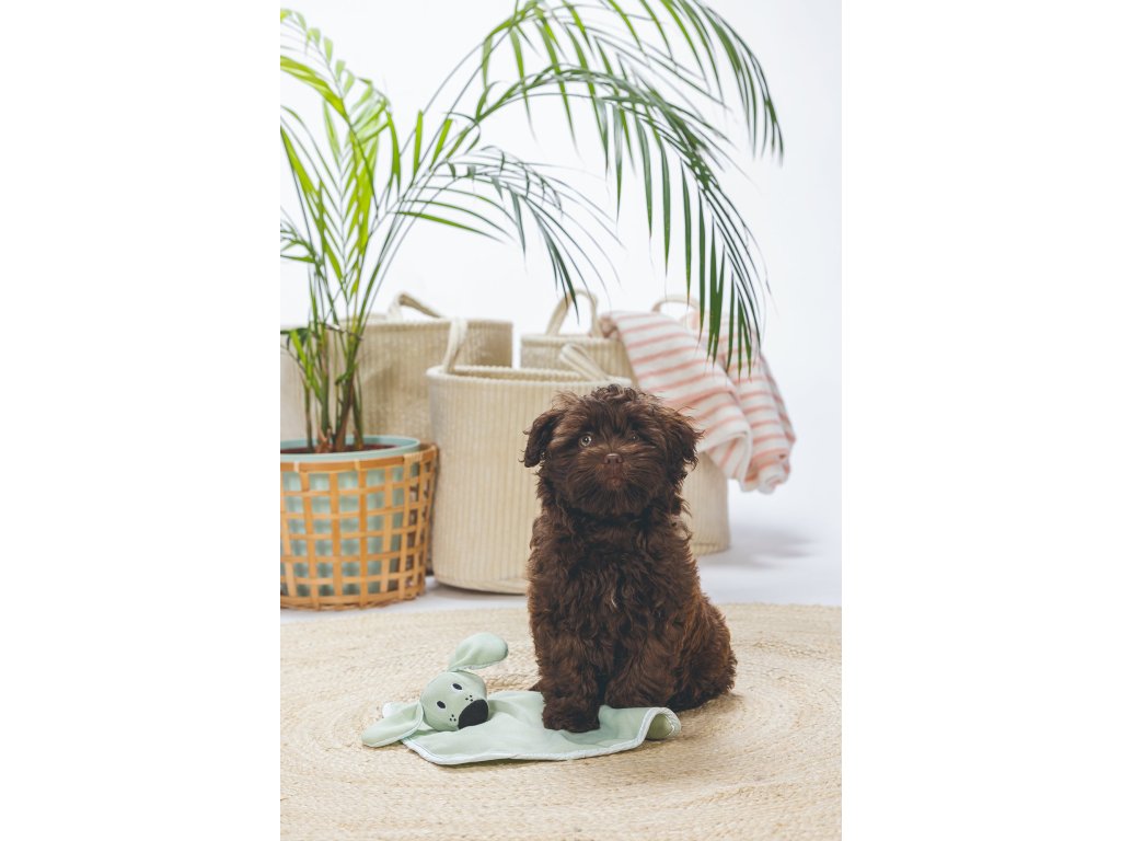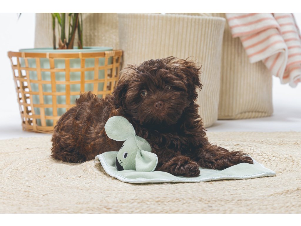 A cuddly blanket with a cute animal, reminiscent of "muchlachky" for babies, is finally here for your puppy! The puppy will use it as a play or sleeping buddy. You can put this plush toy in the puppy's "birth bed" to absorb the soothing scent. The familiar smell will help him get used to the initially unfamiliar environment. It will then provide him with a sense of security even when traveling or in a foreign environment.