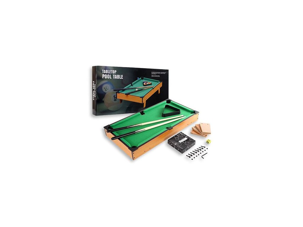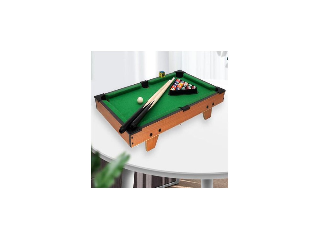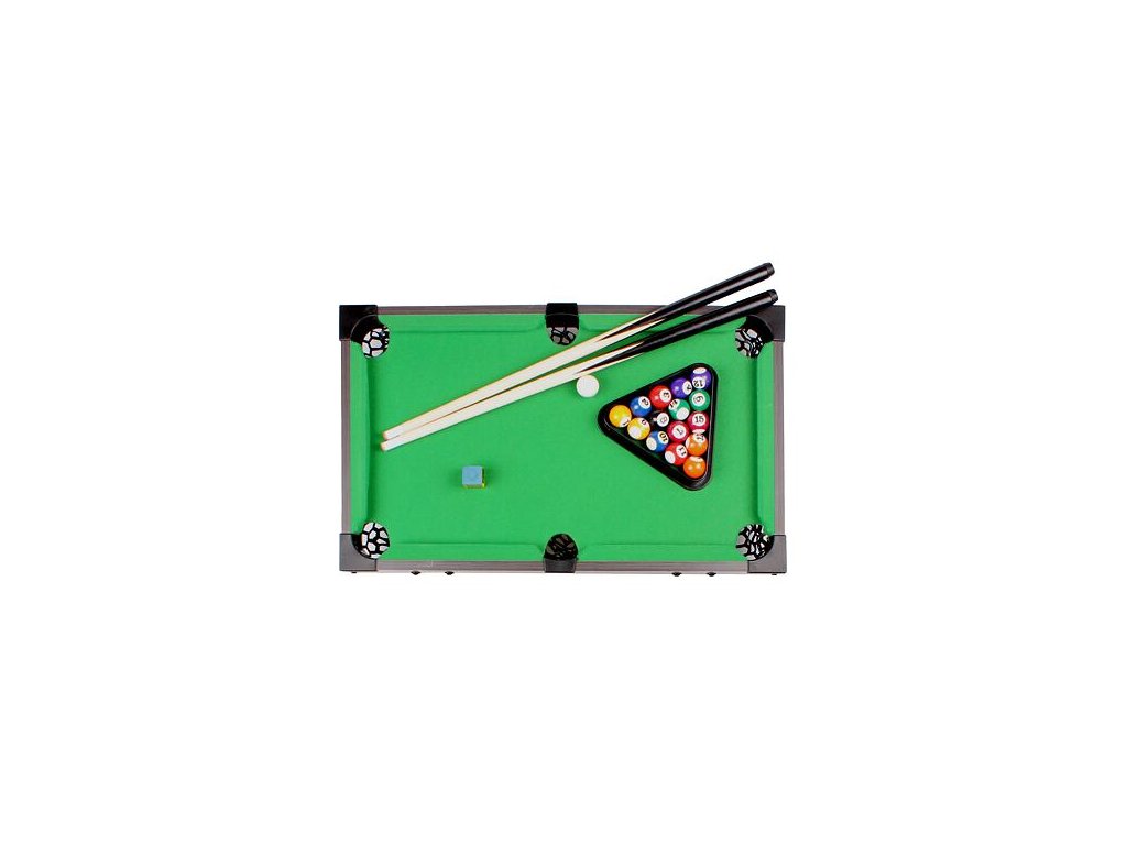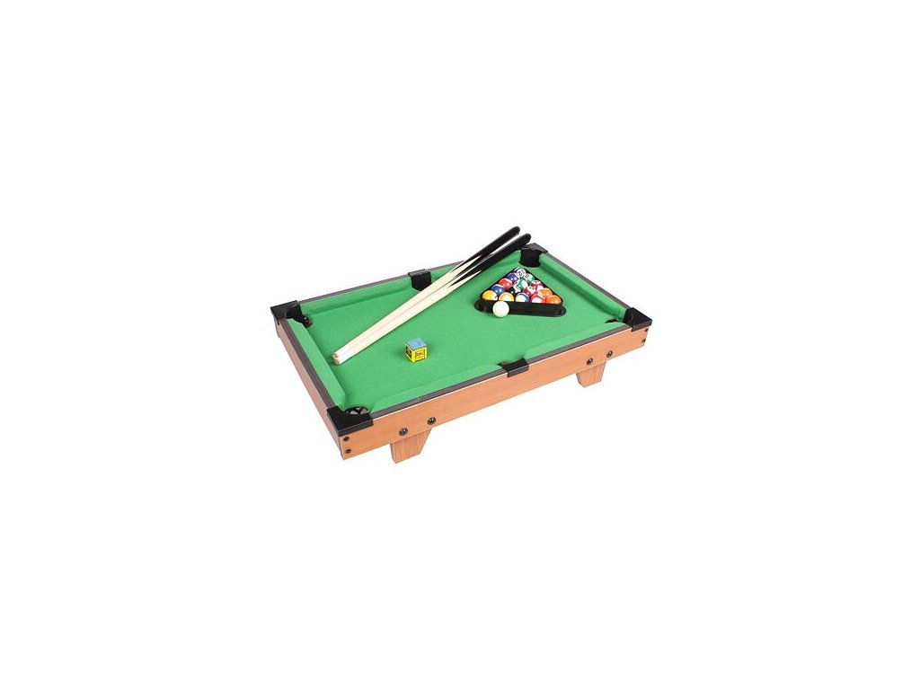 If you are looking for a fun way to spend time at home, on vacation or in the office (if time allows), try the Merco Billiards Mini 50 pool table! This mini pool table offers a very simple and quick assembly - just screw on the four legs, place it on the classic table and you can start. The package contains a wooden table with dimensions of 51 x 31 x 10 cm, two mini cues with a length of 49 cm, a ball with a diameter of 2.5 cm, a triangle and chalk. The entire package weighs only 2.4 kg and measures 53 x 32 x 6 cm. Thanks to this, you can pack the table with you and play even on vacation. WARNING: Not suitable for children under 3 years old. There is a risk of swallowing small parts and suffocation. - contents: 1 pool table, 2 cues, 16 balls, 1 triangle, 1 chalk - simple assembly - table dimensions: 51 x 31 cm - table height: 10 cm - table weight: 1.7 kg - cue length: 49 cm - ball material: resin - ball diameter: 2.5 cm - package dimensions: 53 x 32 x 6 cm - package weight: 2.4 kgAdditional parameters