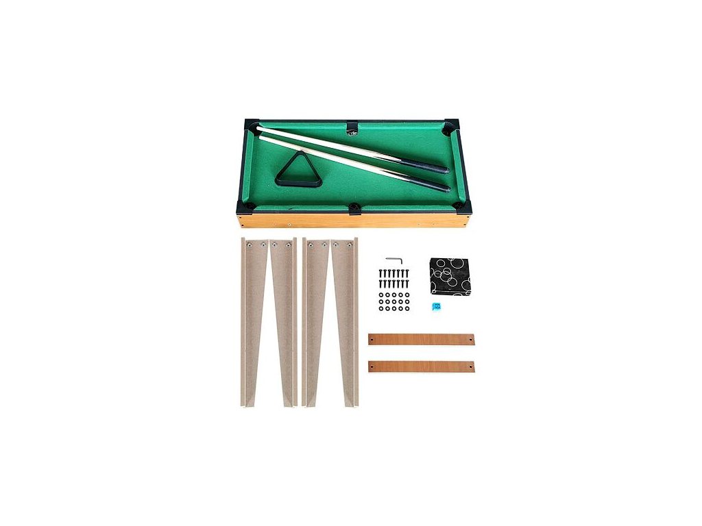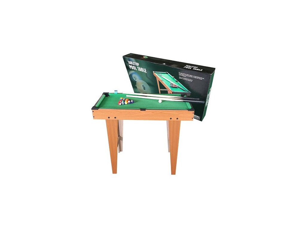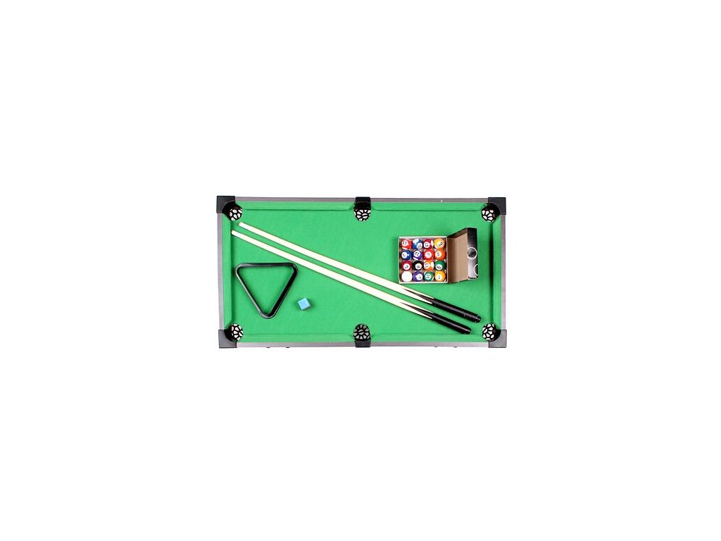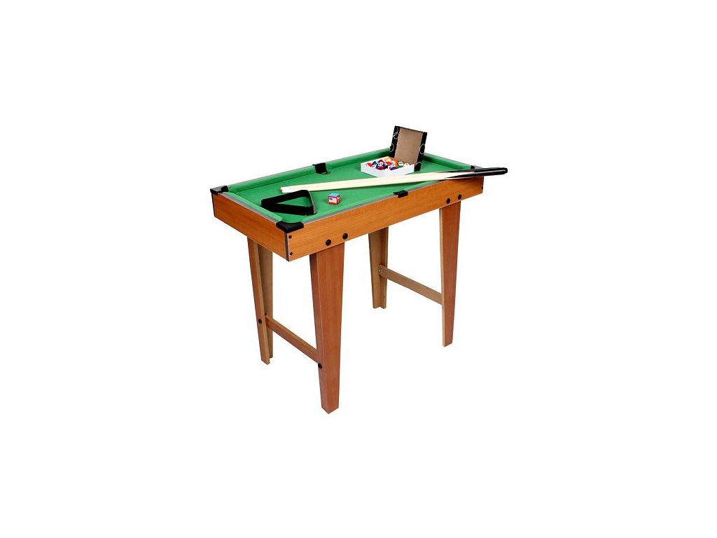 If you are looking for a fun way to spend time at home, on vacation or in the office (if time allows), try the Merco Billiards Mini 69 pool table! This pool table offers a very simple and quick assembly - just screw on the four legs with a length of 54 cm and you are ready to go. The package includes a wooden table with dimensions of 69 x 36.5 x 59 cm, two mini cues with a length of 63 cm, a ball with a diameter of 2.5 cm, a triangle and chalk. The entire package weighs only 5.3 kg and measures 71 x 38 x 9 cm. Thanks to this, you can pack the table with you and play even on vacation. WARNING: Not suitable for children under 3 years old. There is a risk of swallowing small parts and suffocation. - contents: 1 pool table, 2 cues, 16 balls, 1 triangle, 1 chalk - simple assembly - table dimensions: 69 x 36.5 cm - table height: 59 cm - table weight: 4.3 kg - cue length: 63 cm - ball material: resin - ball diameter: 2.5 cm - package dimensions: 71 x 38 x 9 cm - package weight: 5.3 kgAdditional parameters