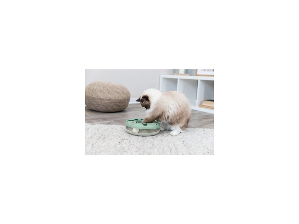 - an active toy for a cat that chases a ball enclosed in a circle with its paw