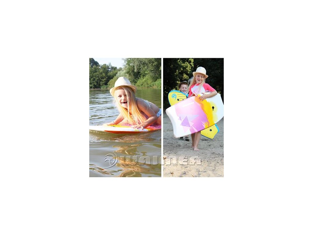 Take to the waves with the Waimea Slick II bodyboard and enjoy the right fun in the water. This lightweight foam board has a soft upper part made of XPE material with a smooth bottom layer made of PP, which makes the bodyboard have less resistance in the water. Also included is a lanyard and a bracelet with a velcro fastener so that your bodyboard doesn't just float around in the water. Treat your children to quality fun in the pool or by the sea with the Waimea Slick II bodyboard! Warning: Do not leave children unattended in the water alone. This is not a rescue aid. Always use under the supervision of an adult, responsible person! Do not leave exposed to direct sunlight for long periods of time. - dimensions approx.: 93 x 50 x 5 cm - weight: 0.69 kg - maximum load capacity: 45 kgAdditional parameters