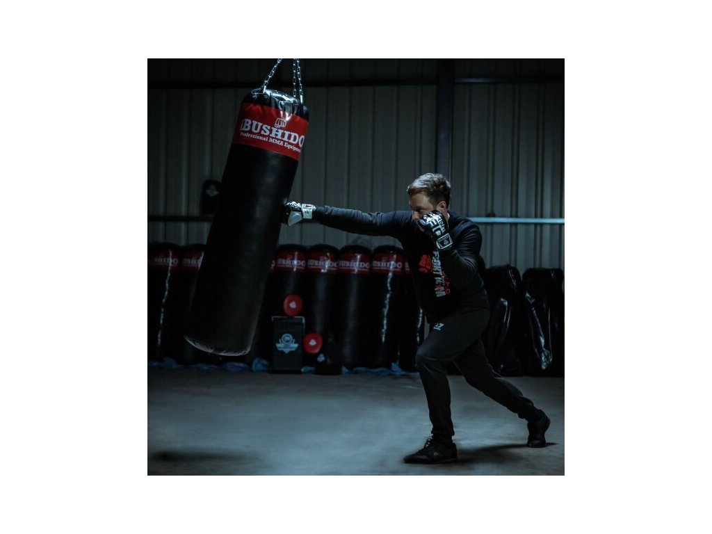 Professional punching bag DBX BUSHIDO 130 x 30 kg. The length of the chains when hanging is 45 cm (a shorter length can also be set thanks to the carabiner).