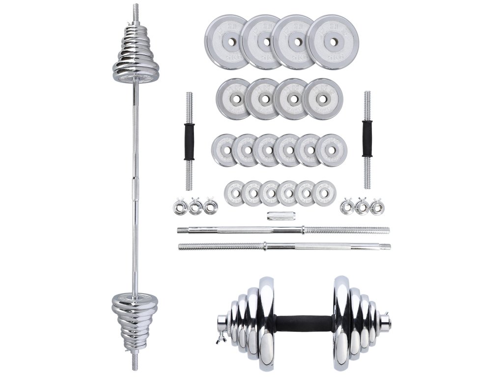 Dumbbells are made of high-quality, chrome-plated steel, which is a guarantee of long life. The discs are secured against displacement with screw locks, which are additionally secured with a screw with a wing nut.