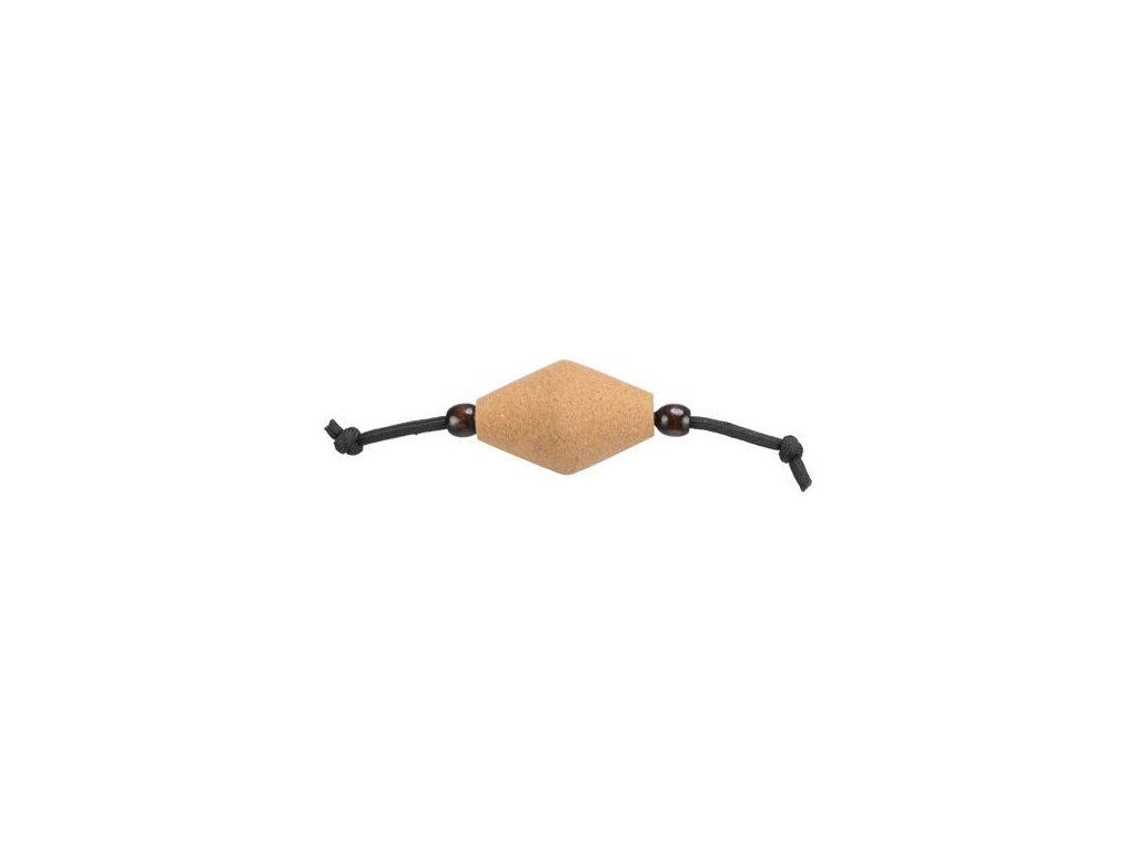 - double-sided cork cone strung on a cord, secured with wooden beads