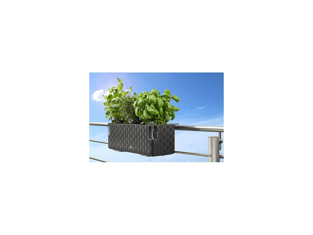 The designer self-watering flower pot Cobble Trio, for three individual flower pots, is ideal for growing herbs and plants in the home environment. The height of the flower pot made of durable plastic is 14 cm, the width is 14.5 cm and the length is 40 cm. The diameters of the holes for inserting three flower pots are 12 cm (suitable for seedling pots with an upper diameter of 10 to 12 cm). Moisture is gradually supplied to the plants thanks to the Aqua System irrigation system – water from the lower reservoir is supplied to the seedling pot with the help of two textile wicks (there are 6 of them in the package). At the same time, you do not pour water directly into the pot from above, but from the side into the watering hole. On the other corner of the flowerpot there is a line with an indicator of the water volume. If you want to have a flower pot hung on the wall or on a balcony railing, you can buy Cobble flower pot holders, designed specifically for this type of flower pot. If necessary, we also offer replacement watering wicks for the Cobble Trio planter.Additional parameters