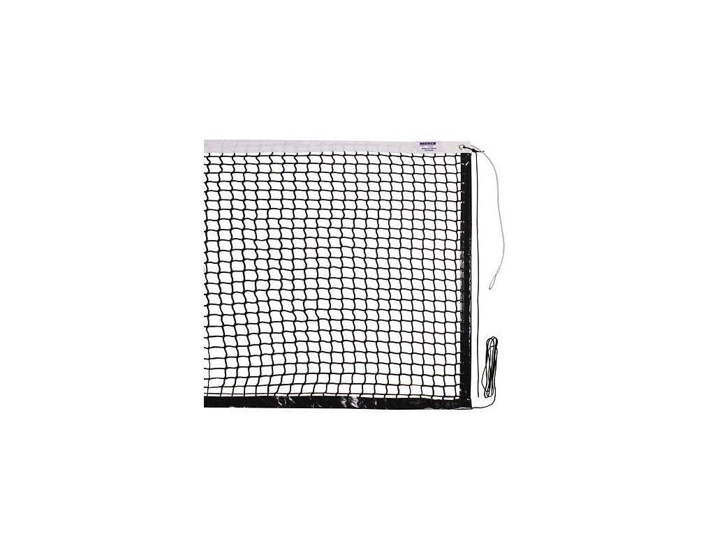Tennis nets of the Merco series are made by a renowned European manufacturer. The quality tennis net Deluxe TN40 is suitable for tennis clubs and for play at all performance levels. The net is made of high-strength, knot-free polypropylene that is UV and weather resistant. This makes the net suitable for indoor and outdoor court use. It has the classic dimensions of 12.8 x 1.07 m, a strength of 4 mm and a mesh size of 35 mm. The top white PES tape with a height of 55 mm adds a long life to the net. The net is stretched using a steel cable. The Deluxe TN40 tennis net meets all the requirements of the EN 1510 standard. Parameters: - durable PP material - dimensions: 12.8 x 1.07 m - strength: 4 mm - mesh size: 35 mm - upper white PES tape - PVC tape around the entire perimeter - steel cable that can be shortened, length 14 m - for indoor and outdoor use - for all performance levelsAdditional parameters