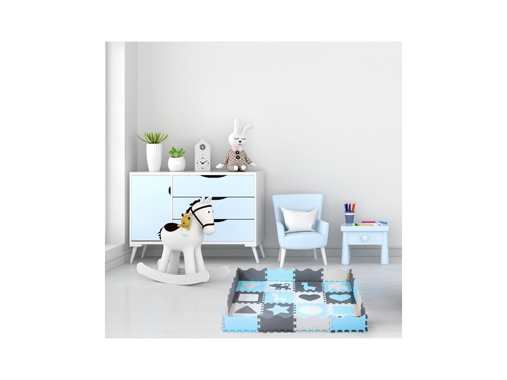 The children's mat from NILS Fun is a great educational toy that in a highly interactive way, it supports the development of shape and color recognition skills in the little ones. Thanks to the perimeter parts that can be easily raised to a vertical position, the mat creates a safe enclosure, defines a space for play and helps organize children's activities. Individual parts have removable centers in the shape of geometric figures and animals, which further encourages children to learn through play. This unique solution makes the NILS Fun mat a multifunctional product that is perfectly adapted to the different needs of toddlers and their parents. In addition to fun, the mat stimulates the development of motor skills and creative thinking, while providing comfort and safety.
