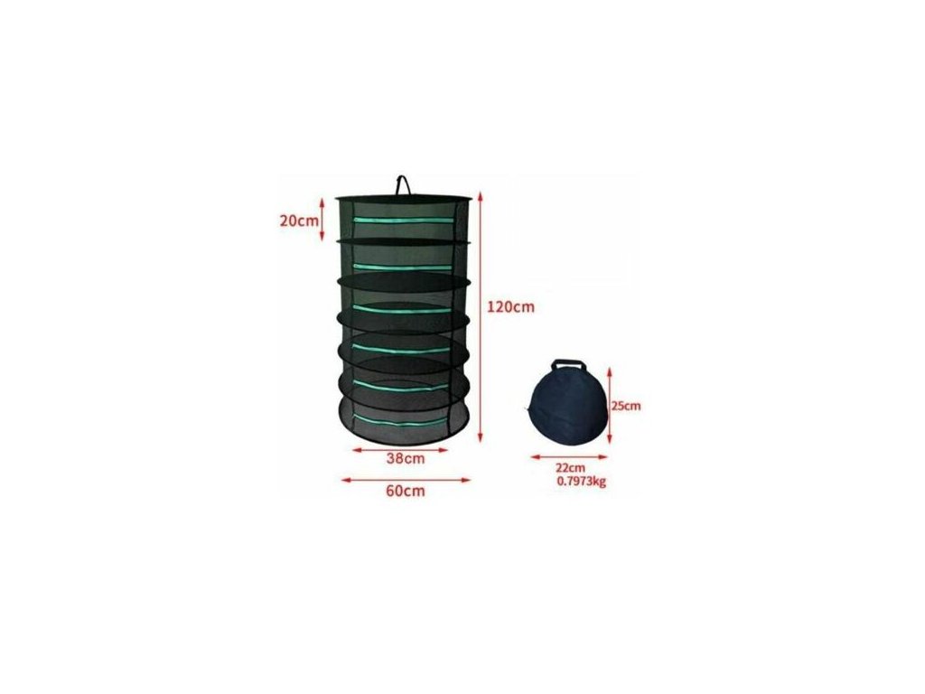 The hanging drying net Dryer 120 offers a simple solution for drying herbs, flowers, fruits and mushrooms. A circular network with a diameter of 60 cm and a total height of 120 cm creates sufficient space for drying plants. You can quickly and easily attach the net to the upper fabric loop with Velcro. The advantage of this folding net is six separate floors with individual access to the classic zip. Dry herbs and plants in the comfort of your home with the Dryer 120 drying net. Parameters: - diameter: 60 cm - total height: 120 cm - weight: 770 g - material: polyester mesh, steel rings - advantages: space saving, separate floors, easy storage - included packaging for storage and carryingAdditional parameters