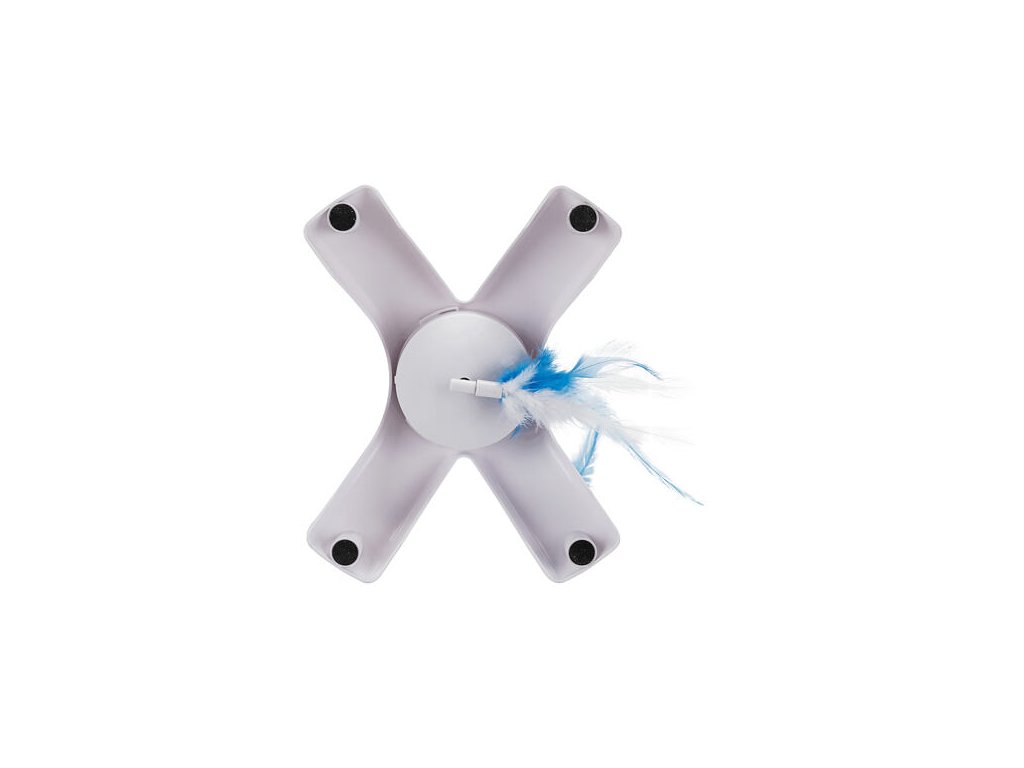 - motor spins the toy around and the tassel provokes the cat to hunt