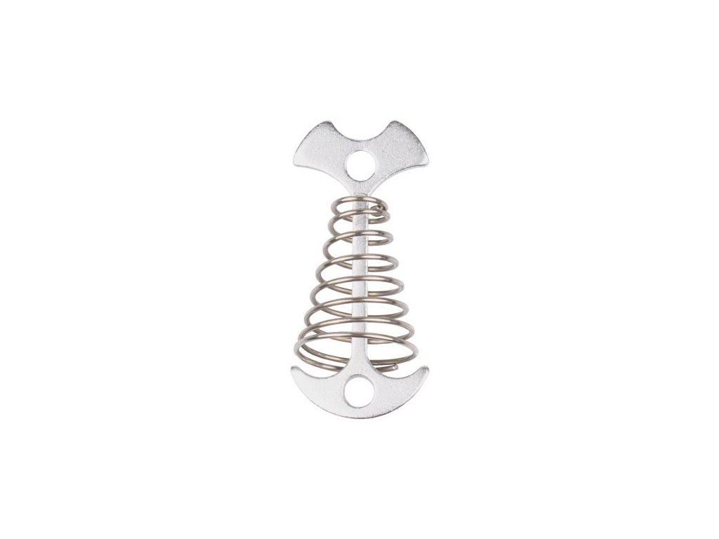If it is not possible to drive a tent peg into the ground because it is too hard, or you need to set up the tent on, for example, the wooden floor of your patio, then the Fish Bone hook will help. The hook is made of durable aluminum alloy and is supplemented with a steel spring. They just insert the hook, for example, into a gap between planks or stones and turn. You then tie the tent cord to the eyelet in the Fish Bone hook and you can safely turn off the tent. Nothing surprises you when camping with the practical Fish Bone hook. Size: 7.5 x 3.5 cm Weight: 16 g Material: aluminum alloy, steelAdditional parameters