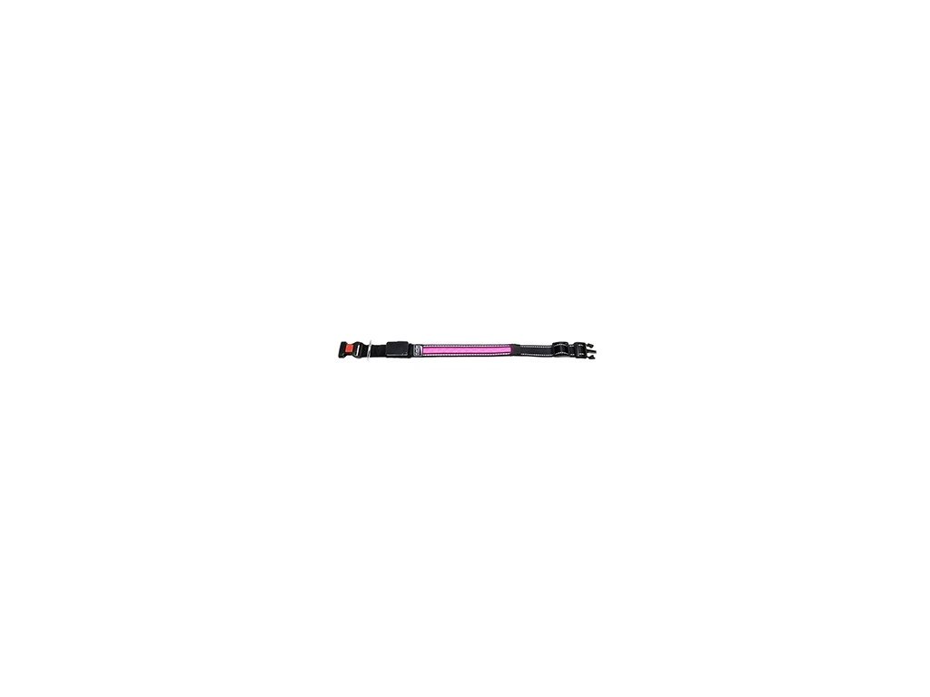 Excellent LED nylon pink collar for a walk at night or in the dark. Includes a charger. Can be charged via USB. Size 48cm.