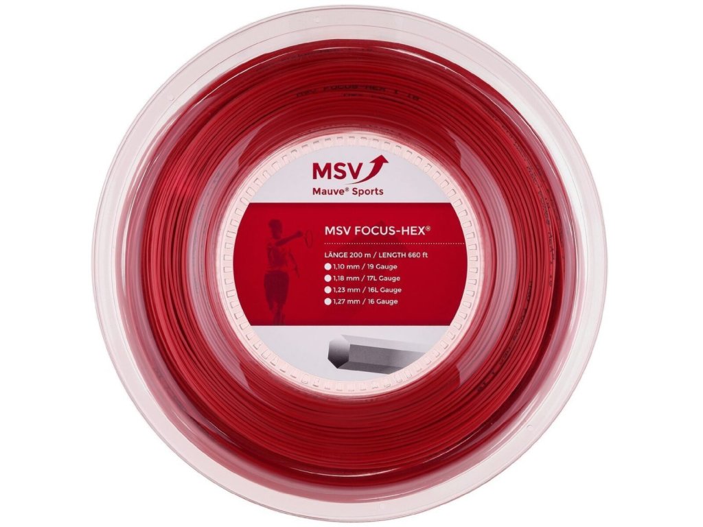 The MSV Focus HEX tennis racket is suitable for all players who appreciate the power of spin shots. This string model is ideal for spin. Another great advantage of the Focus HEX is that even under maximum load it loses only a minimum of its voltage. material: copolymer PolyesterAdditional parameters