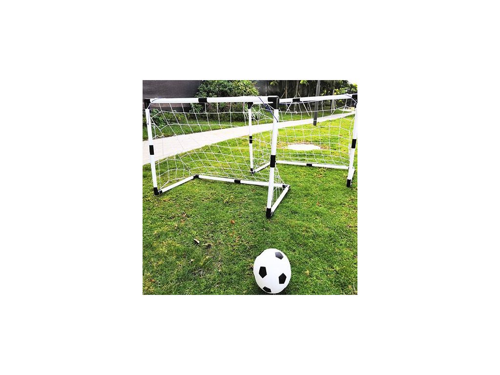 The Merco Garden Goal Set is a set of two folding goals for mini football with family and friends. The goals are made of light PVC material, their dimensions are 92 x 61 x 48 cm and their assembly is quick and easy. The package also includes two polyester nets, a small rubber ball with a diameter of 13 cm, a hand pump with a needle and metal hooks for fixing the goals in the ground. If you don't have a garden, it doesn't matter. Thanks to the small package size and low weight, you can take this set on vacation or to the park. - set: 2 goals with net, ball, pump, ground hooks - material: PVC - goal dimensions: 92 x 61 x 48 cm - package dimensions: 57 x 22 x 8 cm - package weight: 1.1 kg - not suitable for children under 3 years oldAdditional parameters
