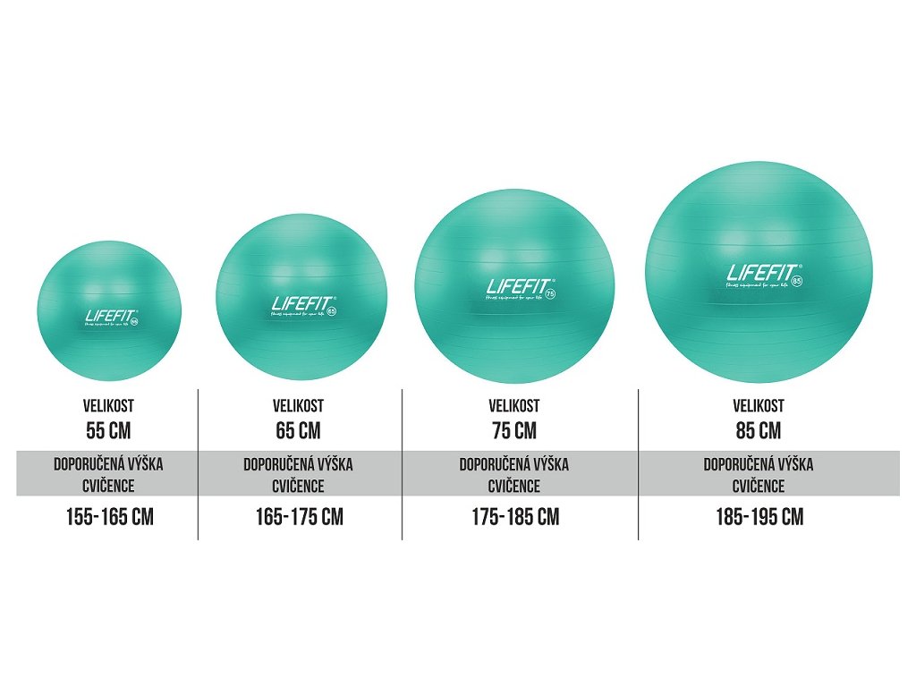The LIFEFIT ANTI-BURST 75 cm gymnastic ball is a ball from a series of professional gymnastic balls. The LIFEFIT 75 cm ball is made of high-strength and durable PVC material with a load capacity of 200 kg. Anti-slip surface protection and the ANTI-BURST system (slow release of air in case of overpressure) ensures a high level of safety and health of the exerciser. The LIFEFIT series of gymnastic balls is produced in several sizes and colors. LIFEFIT balls are suitable for versatile use in fitness, cardio and rehabilitation exercises. The balls are intended for commercial and private use. - universal gymnastic ball - diameter 75cm - recommended height of the exerciser 175-185cm - maximum weight of the exerciser 200kg - highly resistant PVC material - anti-slip surface protection - ANTI-BURST system (in case of overpressure, gradual release of air) - designed for versatile fitness, cardio and rehabilitation exercise - made according to applicable EU standards, does not contain phthalates and heavy metals - suitable for commercial and private useAdditional parameters