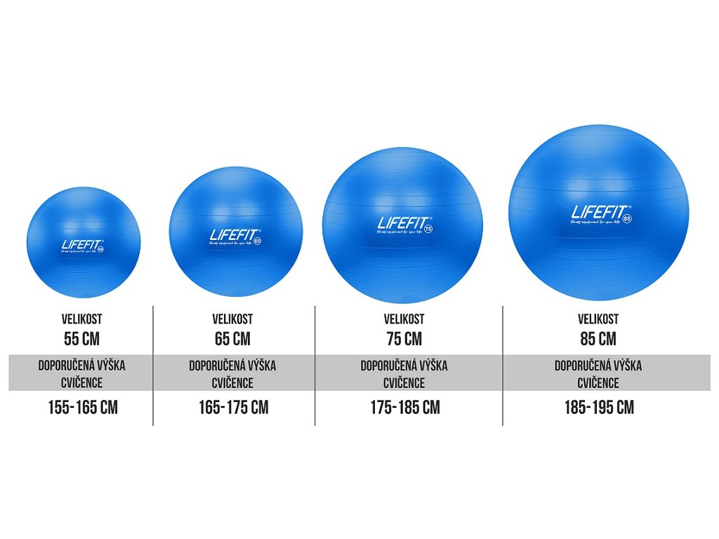 The LIFEFIT ANTI-BURST 85 cm gymnastic ball is a ball from a series of professional gymnastic balls. The LIFEFIT 85 cm ball is made of high-strength and durable PVC material with a load capacity of 200 kg. Anti-slip surface protection and the ANTI-BURST system (slow release of air in case of overpressure) ensures a high level of safety and health of the exerciser. The LIFEFIT series of gymnastic balls is produced in several sizes and colors. LIFEFIT balls are suitable for versatile use in fitness, cardio and rehabilitation exercises. The balls are intended for commercial and private use. - universal gymnastic ball - diameter 85cm - recommended height of the exerciser 185-195cm - maximum weight of the exerciser 200kg - highly resistant PVC material - anti-slip surface protection - ANTI-BURST system (in case of overpressure, gradual release of air) - designed for versatile fitness, cardio and rehabilitation exercise - made according to applicable EU standards, does not contain phthalates and heavy metals - suitable for commercial and private useAdditional parameters