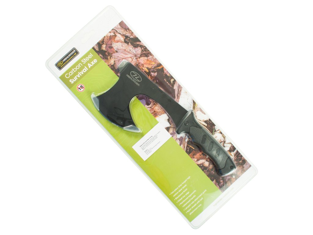 Light ax for survival in nature. The ax is forged from one piece of high-quality carbon steel (axe including handle). The ergonomic rubberized handle (axe) for a comfortable and safe hold is reinforced with glass fiber to prevent damage. There is a hole in the handle for threading a cord through. At the top of the ax is a point that can be used as a chisel for precise woodworking. Includes nylon holster with belt loop attachment.