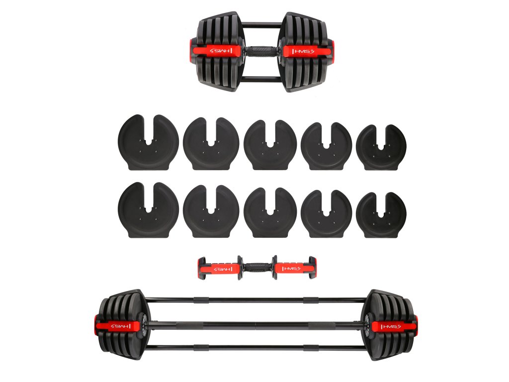 HMS SGR40 PRO SET 2in1 is a set of variable - adjustable dumbbells that can be assembled as one-handed or two-handed dumbbells.