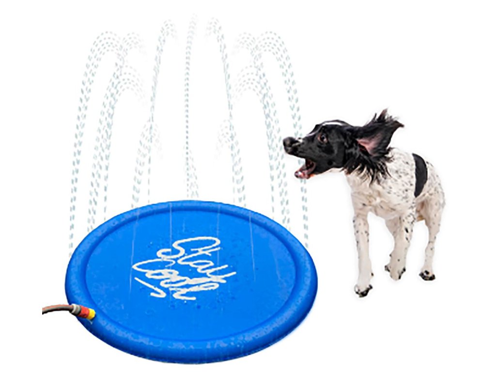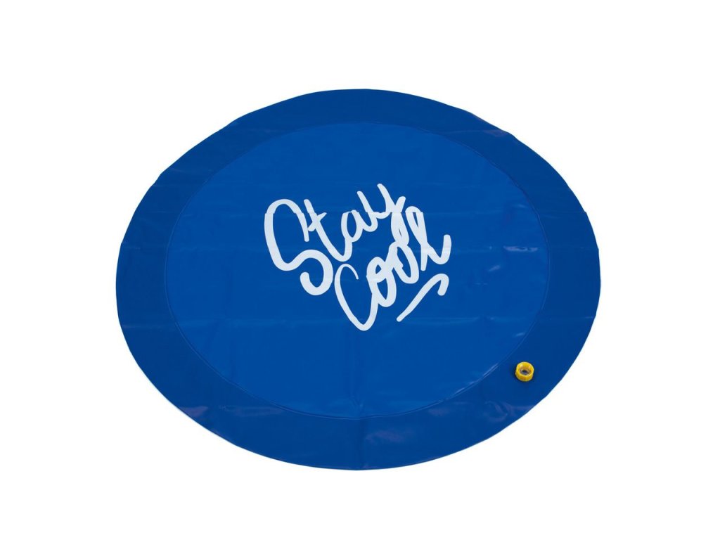 A pad for refreshing cooling on hot summer days. A robust pad with small holes on the edge from which water sprays. Possibility of connection to a water hose using the attached connector.