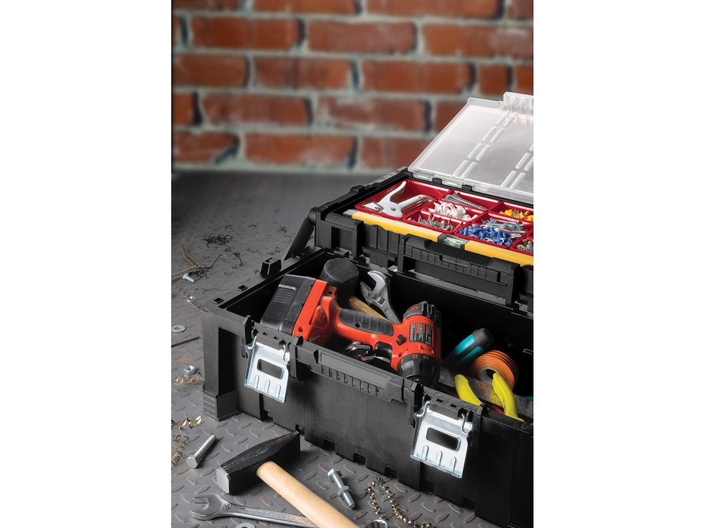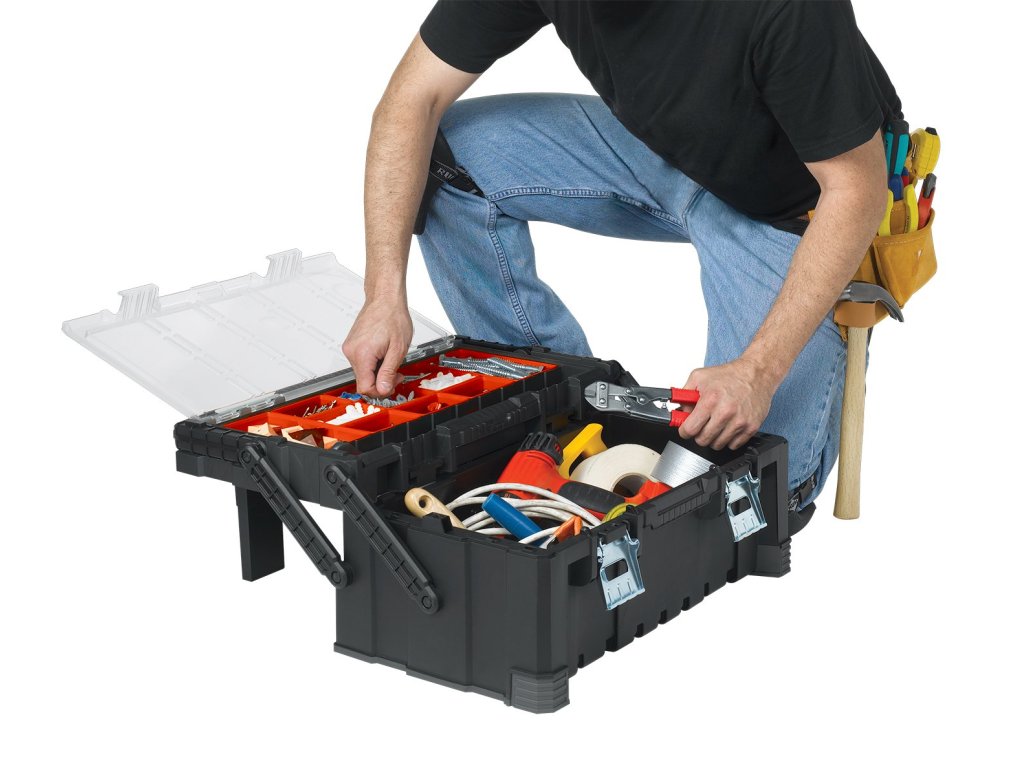 A practical cabinet with a large volume. The specially designed interior and long chamber are designed to store larger tools, make work easier and allow tools to be divided according to size. Thanks to the comfortable and durable metal handle, the cabinet can be carried safely. The high quality of the product design guarantees stability and durability, even in difficult working conditions.