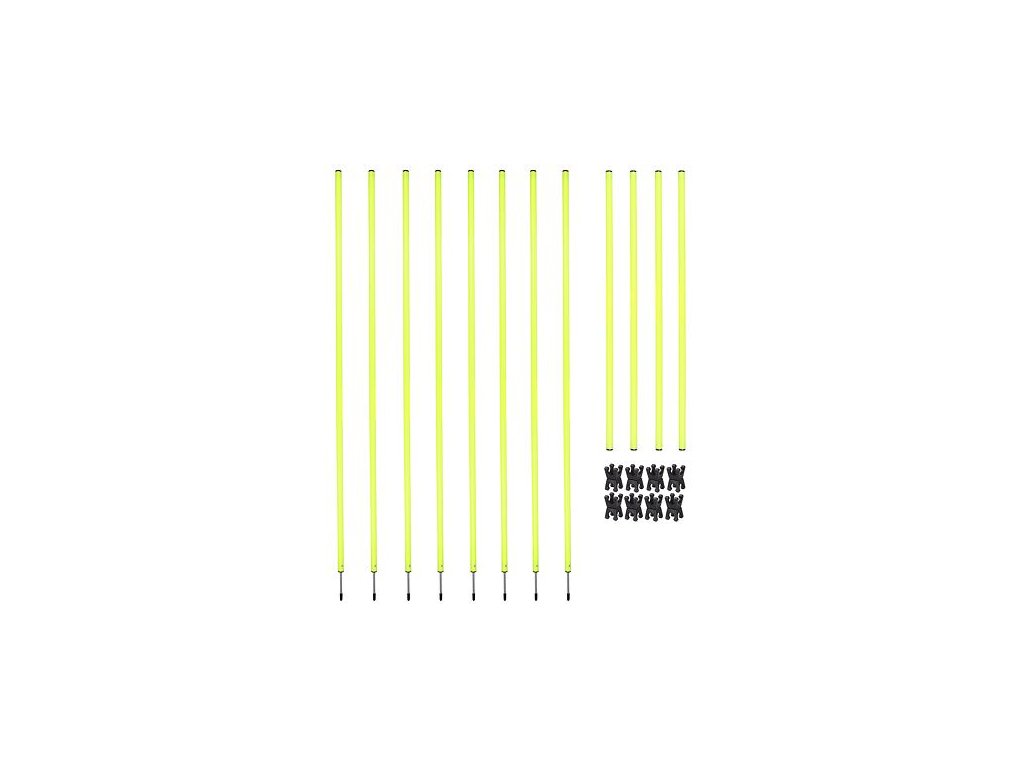 The Kit Outdoor 1.0 agility obstacle set is a great tool for your training on a field with a grass surface. Agility obstacles are suitable for athletes of all sports, clubs and schools. Thanks to the obstacles, you improve your condition, effectively train the speed and coordination of the lower and upper limbs. You can adjust the height of the bars as you like and thus set the difficulty of the course. The set also includes a practical bag made of polyester for easy carrying and storage between individual training sessions. Parameters: - intended for a grass surface - suitable for gardens, schools, sports clubs - included: 8x slalom pole 160 cm; 4x rod 100 cm; 8x clutch - material: PVC - set weight 4.3 kg - practical bag includedAdditional parameters