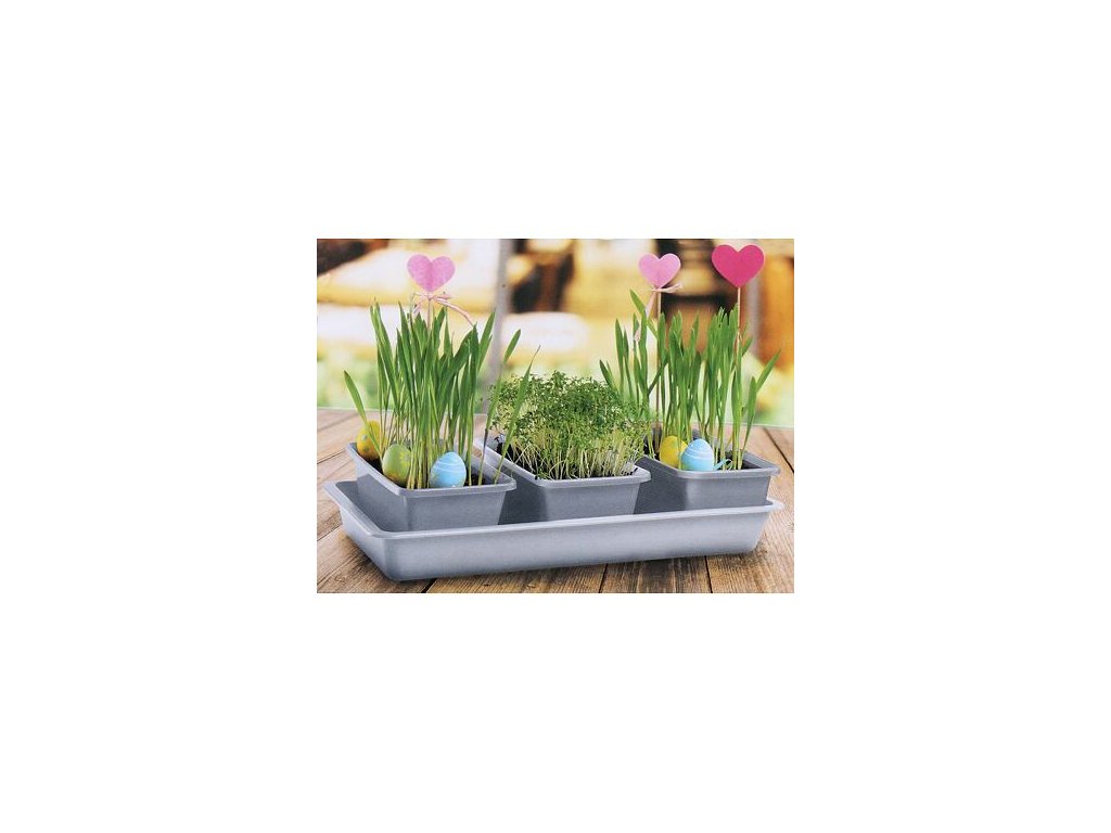 The Plastkon Garden Set Kit from the Gardenico series is an ideal choice for growing herbs and smaller plants in an apartment or on a balcony. Made entirely from recycled plastic, this set includes one saucer, three boxes, a shovel, a rake, a hoe and a watering can. Grow in the comfort of your home and always have herbs at hand with the Plastkon Kit garden set. Kit set: - bowl under the box: 40 x 20 x 5 cm (top length x width x height) - box: 20 x 10 x 8 cm (top length, width, depth) - cup: volume 250 ml, 11 x 11 cm (width x height) - shovel: 18 x 6 cm (length x width) - rakes: 18 x 6.5 cm (length x width) - hoe: 18 x 4.5 cm (length x width) - set weight: 470 g The stated dimensions are indicative only and may vary slightly by a few millimeters.Additional parameters