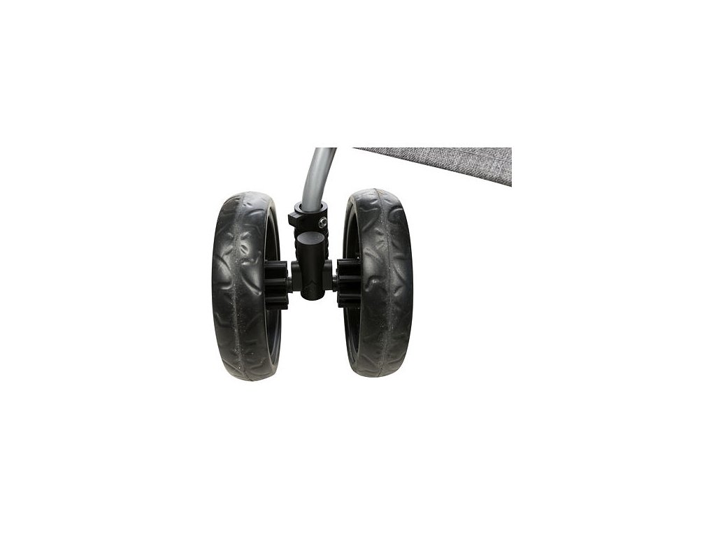 - easy driving and maneuvering thanks to the 360° swivel front double wheels with suspension