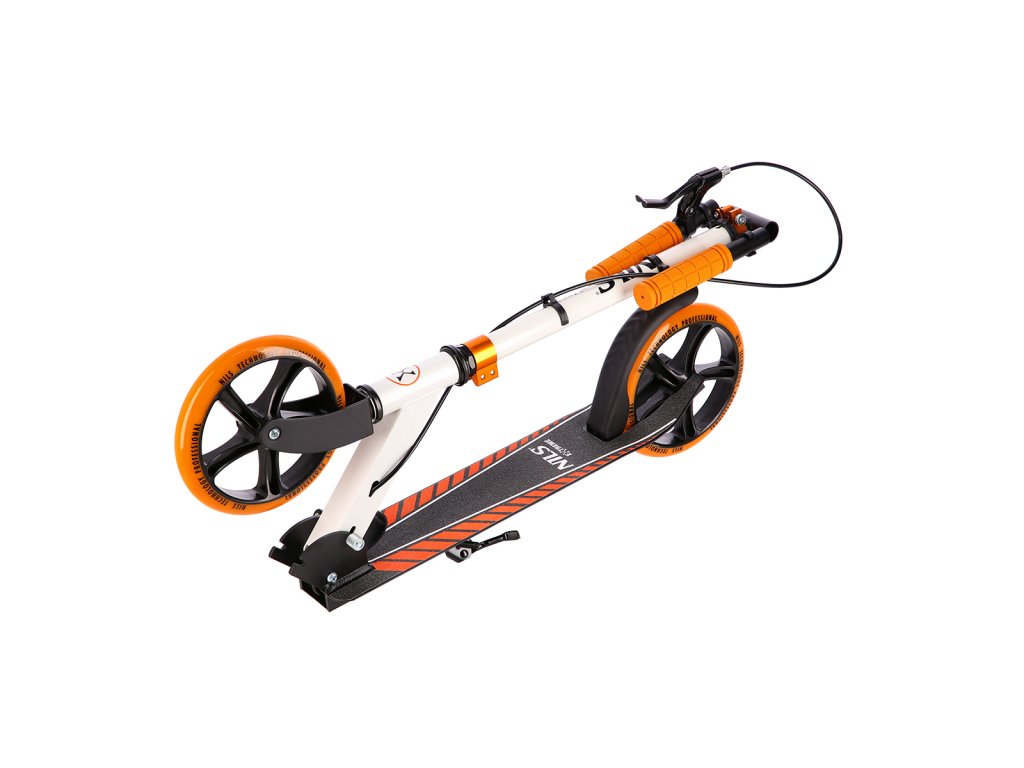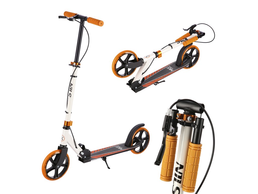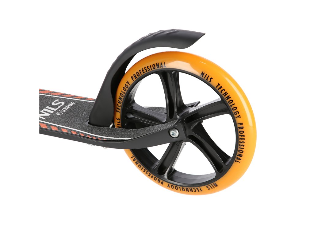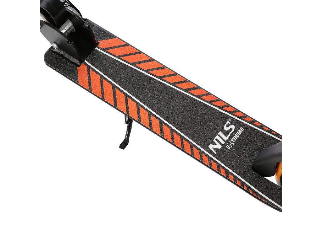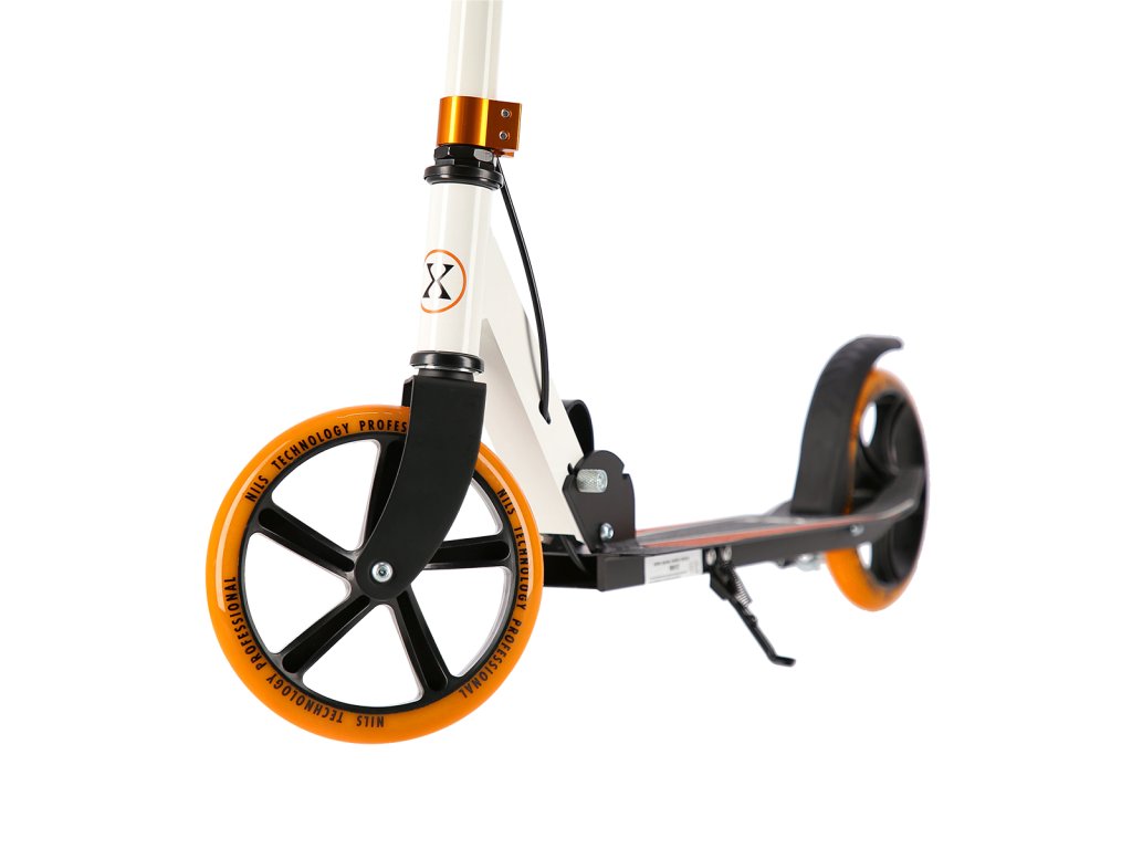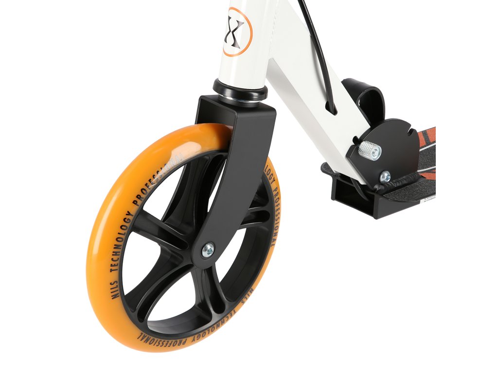 The NILS Extreme HM0107 scooter is suitable for children, teenagers and adults. The HM0107 model is characterized by a folding stand and a rear brake controlled by a lever from the handlebars.