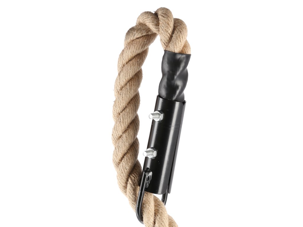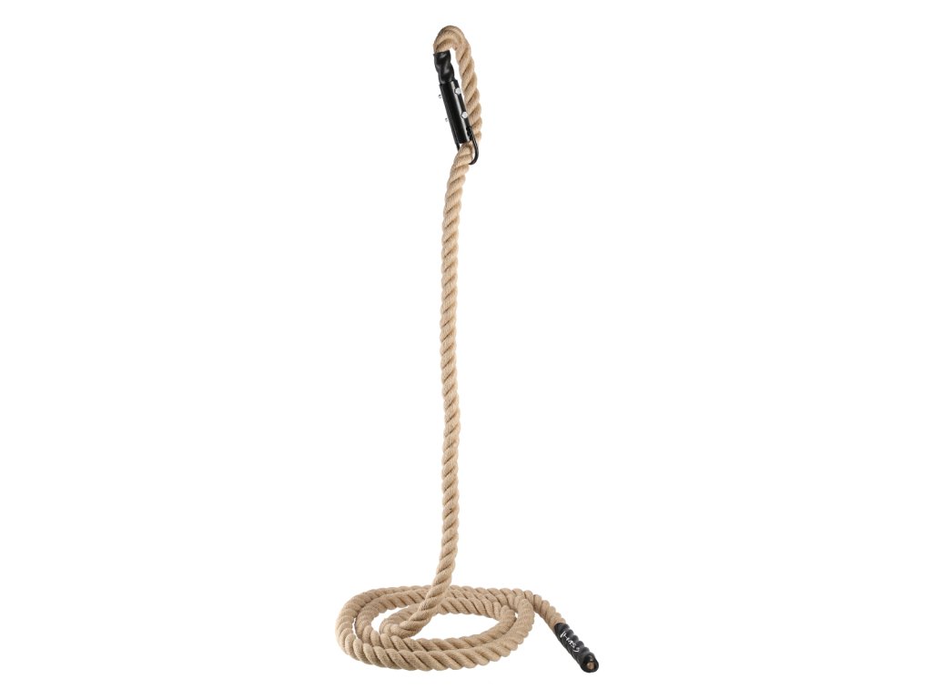 The HMS RP05 climbing rope is made of jute. The ends are provided with anti-tear sleeves and the mounting end is provided with a steel eye. There is no need to knot the rope, but just pull it through the eye around the mounting element and tighten the loop. The length of the rope is 5 meters. The diameter of the rope is 38 millimeters.
