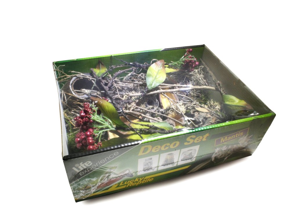 That is why we now offer the Deco Set from Lucky Reptile in three variants (Desert – decoration for dry biotopes, Jungle – decoration for humid tropical environment, Mantis – a mixture of natural and artificial decorations for insects). Deco Set is a mix of various small cork twigs, dry moss, bark, etc. intended for equipping small nano terrariums the size of InsectTarria, Life Box, etc.