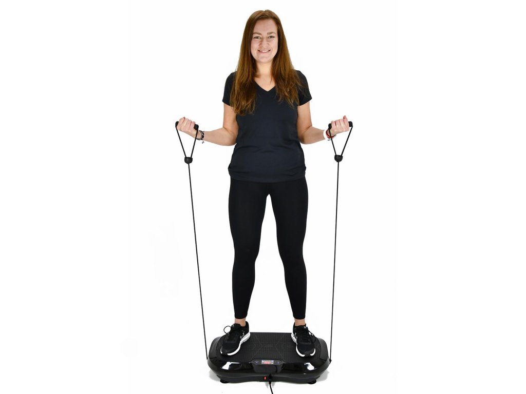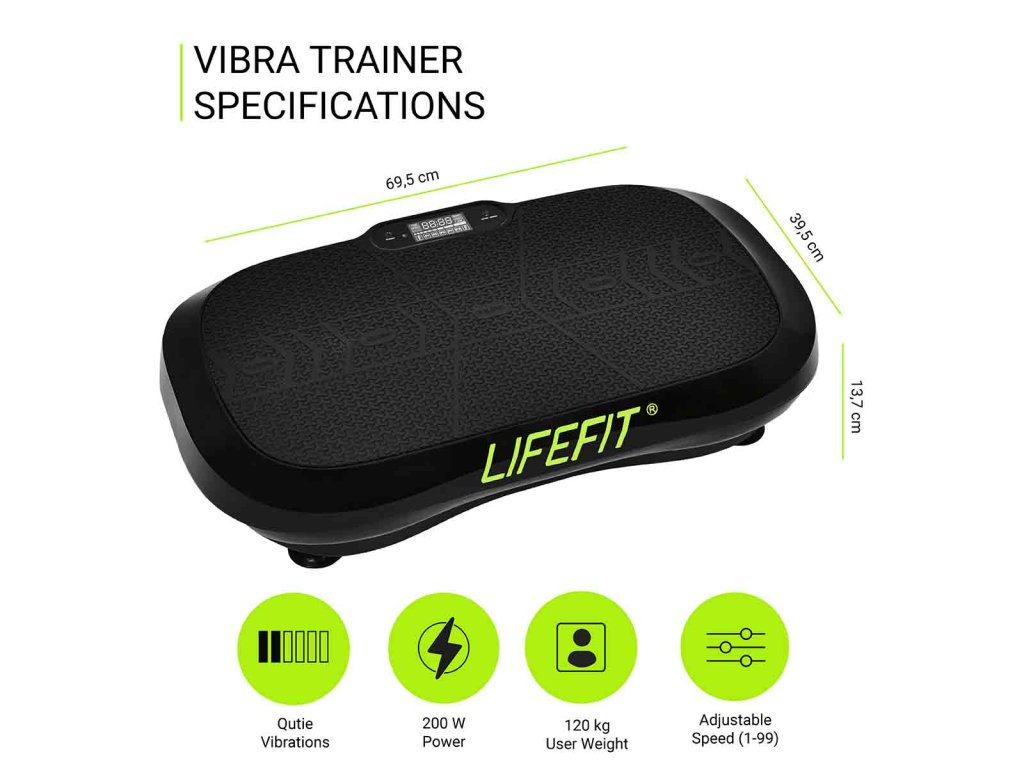 The LIFEFIT VIBRA TRAINER vibrating platform is a machine that can be used in two ways. With its help, you can not only strengthen, shape your figure and break down excess fat, but also support the relaxation of tired muscles or improve blood circulation. The vibration platform works on the principle of oscillating movement, which with each vibration of the platform will bring your body slightly out of balance, which means that the muscles have to develop much more strength to master the exercises. In addition to the exercise itself, your body must also maintain balance. Deep stabilizing muscles are involved. The platform can be controlled using the display or remote control. The display shows time, speed, distance and the selected program. The platform stands out for its high-quality workmanship and is suitable for home use. - vibrating platform for effective muscle strengthening and relaxation - 99 speeds - 6 programs (5 preset and 1 manual) - removable expanders suitable for strengthening the upper body - stable non-slip feet - non-slip exercise surface - clear LCD display - remote control (2x AAA micropencil battery - included in the package) - mains supply (220 V) - vibration types: vertical - vibration frequency: 5 - 15 Hz - oscillation amplitude: 10 mm - dimensions: 69.5 x 39.5 x 13.7 cm (LxWxH) - dimensions of the exercise area: 59 x 33.5 cm (LxW) - power: 200 W - noise level: 52-64 dB - weight: 14 kg - maximum load: 120 kg - suitable for home use