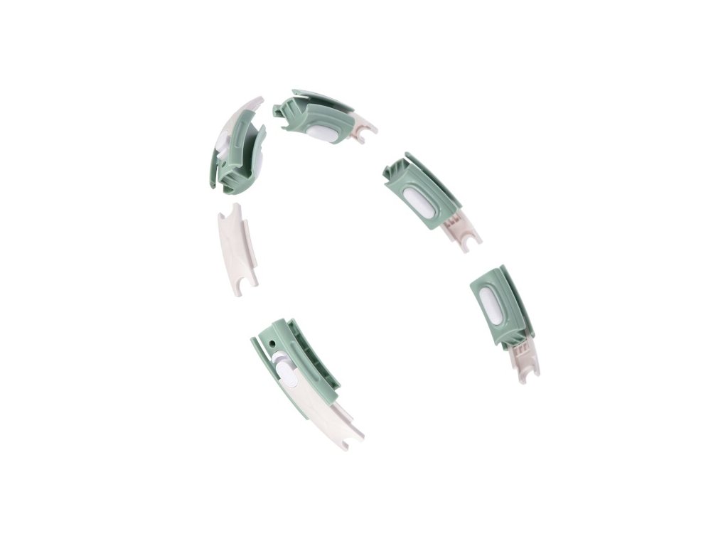 The structure consists of 16 identical parts that are connected using plastic connectors. In order to close the hoop, you need to use at least 12 parts. The individual parts hide a rail into which the anchor, fitted with four wheels with ball bearings, is inserted before closing. A weight of 400 grams is attached to the anchor using a length-adjustable strap. The string can be adjusted to a length of 20 to 38 centimeters, changing the length of the string adjusts the resulting centrifugal force of the weight - the longer the string, the "heavier" the weight will be.