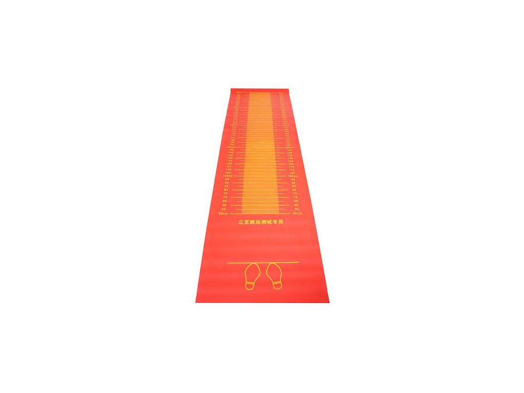 long jump with snow is performed from a flat, solid and non-slip surface into a sandpit, on a mat or a mat intended for this purpose, with the fact that the rebound and impact surfaces must be on the same level. The Merco measuring mat for standing long jump meets all these requirements 100%. The Merco long jump measuring mat is made of 3.5 mm thick heavy rubber that is non-slip, shock and noise absorbent, has exceptional durability, is UV resistant, non-flammable, health-friendly, odorless and very easy to maintain . We offer the Merco long jump measuring mat in red and green. Both color variants in the size 3.5 x 1 have both variants with a contrasting and long-lasting print of a reflective mark and a scale from 50 to 300 cm depicted in 1 cm increments. And once more to the rules. The jumping person tries to jump forward as far as possible from the marked point of reflection from a narrowly straddled stance. Auxiliary movements of the arms and trunk are allowed, on the contrary, a hop before the rebound is not allowed. The length of the jump is measured from the bounce line to the heel of the foot closest to the bounce. You can then compare your resulting performance in our performance table, which we have placed among the other product photos.Additional parameters