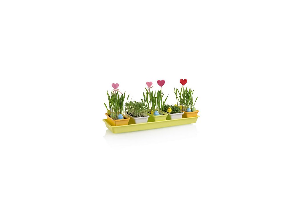 The set of smaller growing boxes Minigarden 60 Spring Mix is an ideal choice if you have decided to grow herbs at home. The set consists of a larger plastic bowl and five small plastic boxes in pastel colors. There are two holes in the bottom of each box so that excess water can drain into the bowl. It captures the excess water and the plants can draw watering for a longer period of time. The Minigarden set is suitable for growing and pre-growing young plants from seeds. Herbs and plants will do best if you place a set of boxes on a windowsill so they get plenty of light. The dimensions of the saucer are 59 x 20 cm, the dimensions of each box are 20 x 10 x 8.5 cm. Herbs and substrate are not part of the package.Additional parameters