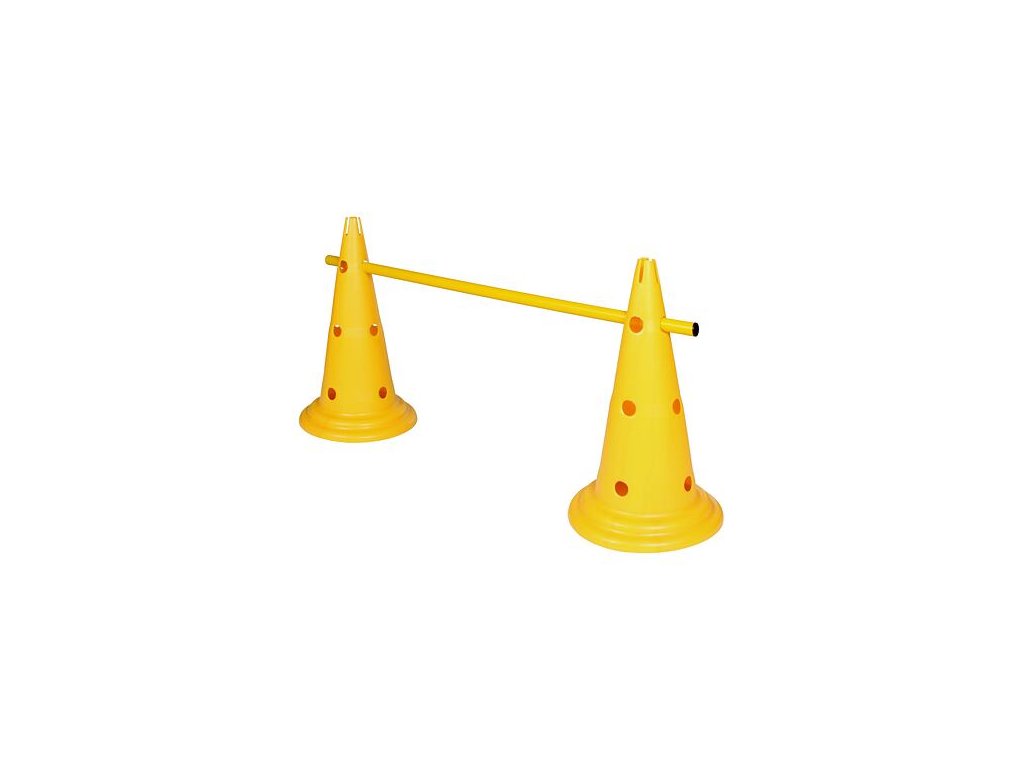 Marking cone in two colors (orange and yellow) with a height of 52 cm for defining the playing field or for creating a slalom and obstacle course. Unlike classic models, the Multi multi-purpose cone is very variable and has universal use. Its shell has a total of 12 holes with a diameter of 3 cm located at three heights. There is a cross cut on the tip of the cone. Obstacle bars can be inserted in any combination of holes and other training aids with a smaller diameter can be placed in the cut-out at the top (e.g. a circle). We recommend combining the Multi cone with plastic rods P1, P2, P3, telescopic rod P4 or HP obstacle ring. Parameters: - height 52 cm - holes at heights of 8, 23, 38 cm - cone base: diameter 29.5 cm - weight: 0.5 kg Material: plasticAdditional parameters