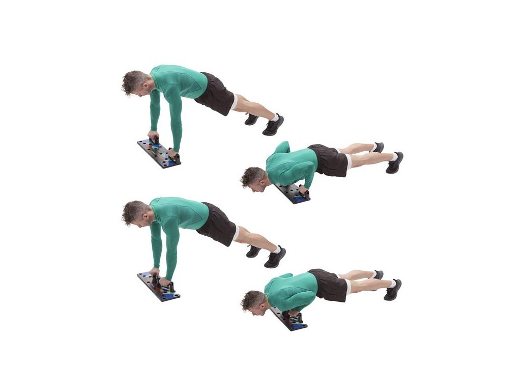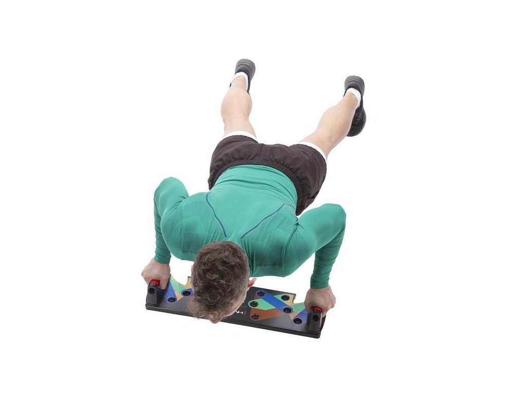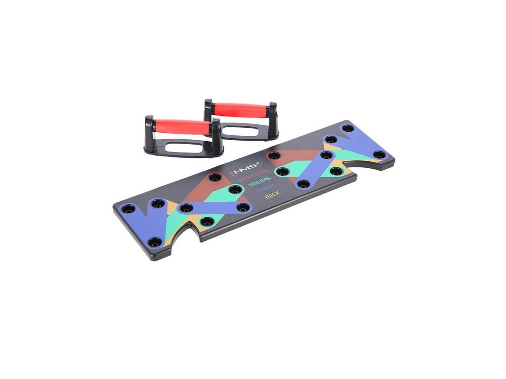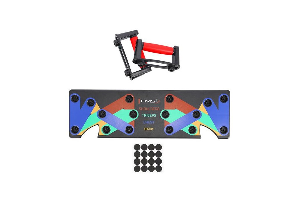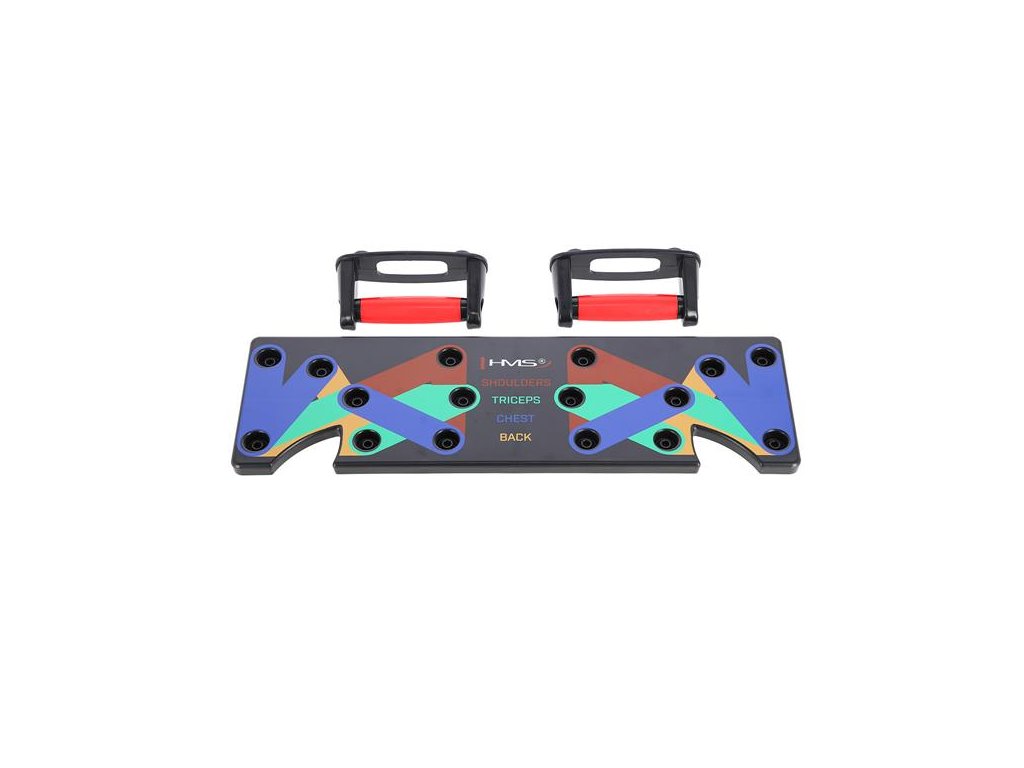 PU10 HMS is a multi-functional, folding board that enables variable push-up training. The board is symmetrically divided into 2 halves. The PU10 includes 5 pairs of holes for placing the supplied supports. Each pair of holes allows training from a different angle, where a different muscle group is trained, namely:
