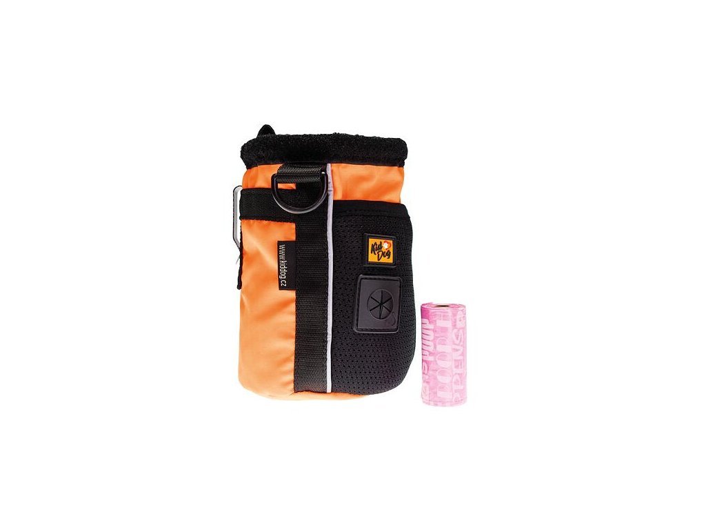 Top outdoor product in modern design for any weather. The treat is intended for training and rewarding your partner. Treats are stored inside a large compartment with the possibility of simple and quick removal. You can use it in obedience training, training or agility training. You can use its practicality on walks in nature, thanks to the side mesh pocket, which has a separate inner pocket with an integrated excrement bag dispenser. One roll with 20 bags is included. The treat is made of durable, waterproof, washable and greaseproof outdoor material. On the back of the treat there is a metal clip in the shape of a loop for fastening to the belt of the trousers. On the side there is a carabiner for attaching keys, whistle or clicker. Reflective safety tapes provide you with better visibility in the dark. Practical is the removable, adjustable strap, which measures 125 cm in maximum length and you can use it to carrythe treat over your shoulder , around the waist or, in extreme cases, the strap will serve as a guide. The embroidered KIDDOG logo gives the treat an attractive design.