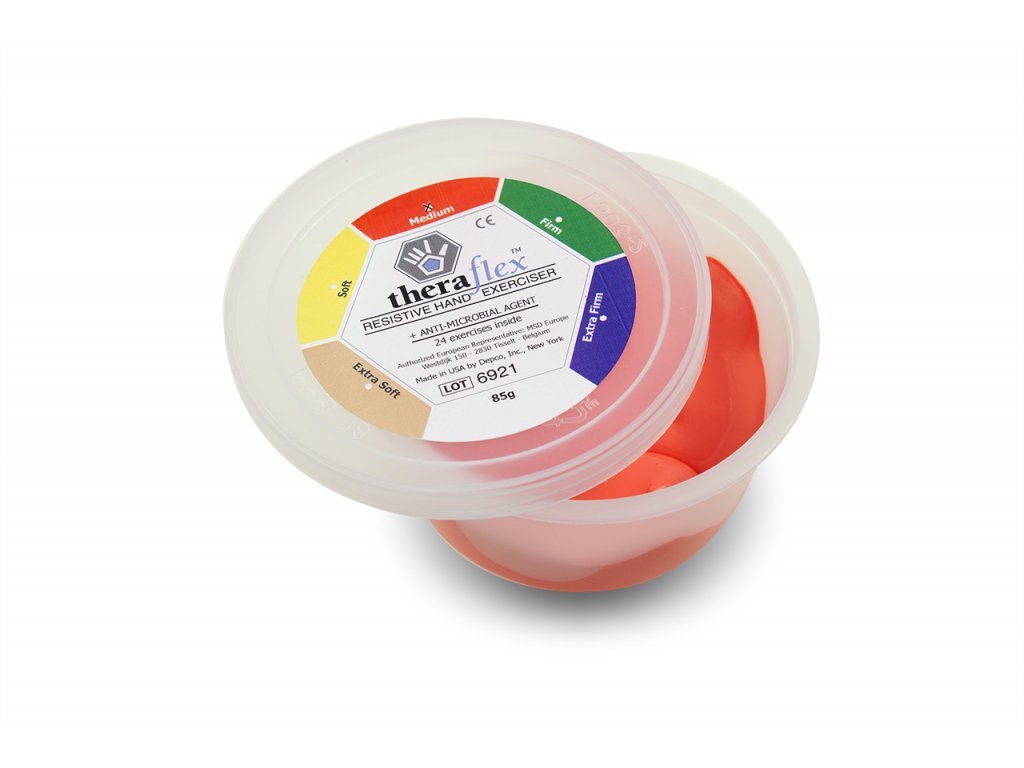 Theraflex Putty™ Exercise, Rehabilitation and Strengthening Compound™ strengthens weakened grip through exercise and is used for rehabilitation exercise or stress relief. An excellent helper for relaxing and rehabilitating tired fingers when working for a long time on the keyboard. Theraflex Putty is odorless, does not stain and does not leave residue on the hands, is non-toxic, non-greasy, hypoallergenic and latex-free. The material is enriched with an anti-microbial component. Maintenance: wash with lukewarm soapy water.