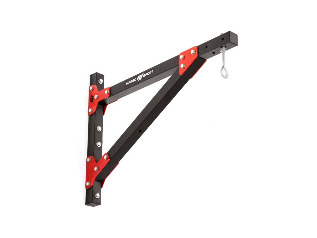 The wall holder for the MARBO Sport MH-D205 punching bag is made of a steel profile 40 x 40 x 2 millimeters and thanks to this, its load capacity is up to 100 kilograms. Individual parts are made on precise, programmable CNC machines, this production process is a guarantee of trouble-free assembly. The attachment to the wall is carried out by means of 4 mounting holes using an appropriately selected anchoring material depending on the substrate. The steel eye, on which the punching bag itself is hung, is secured against rotation by two nuts that are tightened against each other and form a so-called counter, which prevents them from loosening. The distance of the hanging eye from the wall is 70 cm. There is enough space around the punching bag for movement and training is as safe as possible. The anchoring material is not included in the package.