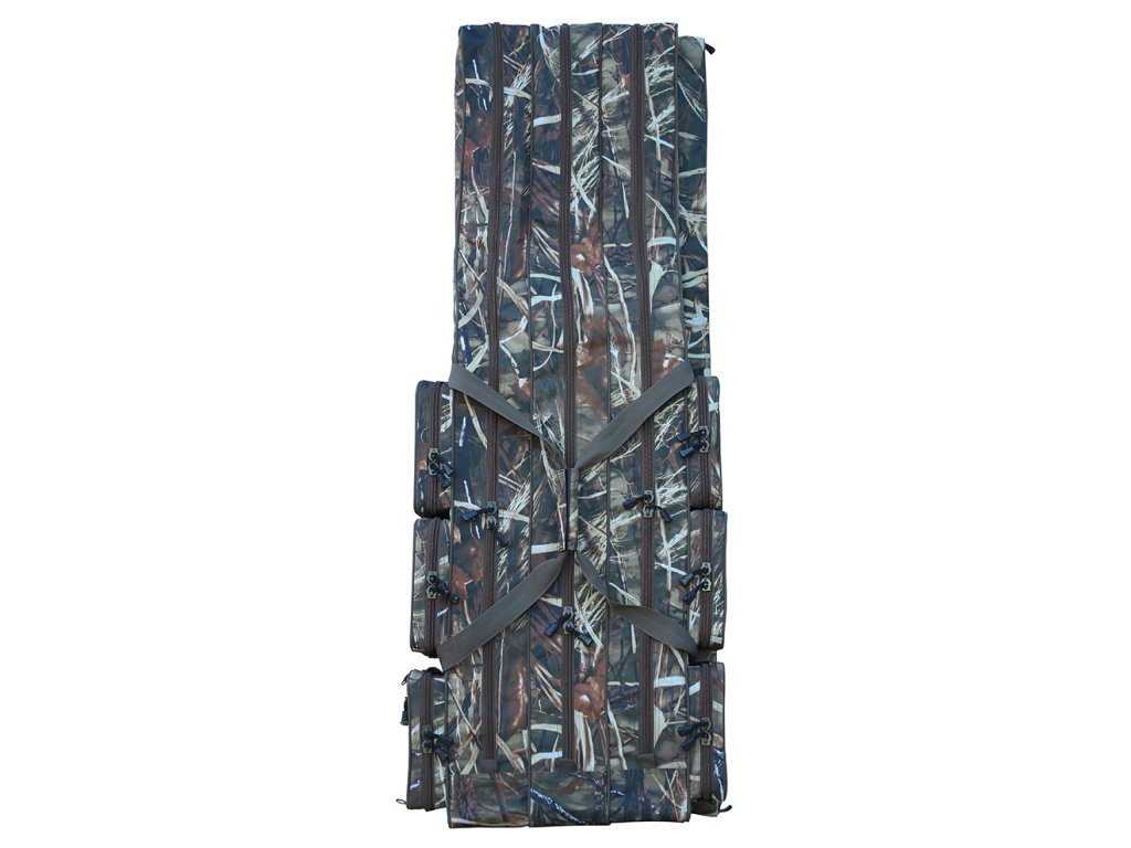 The brand new camo rod bag holds almost everything you need for your fishing trip. The width of the chamber is 11 cm, the height 21 cm narrows to 11 cm at 80 cm.